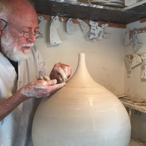 Jeg har arbeidet 50 år som keramiker på full tid. De senere årene har jeg kunnet konsentrere meg mer om det som har blitt en besettelse og lidenskap: krystallglasurer. Opprinnelig er jeg utdannet lærer fra Danmark med fysikk og kjemi som spesialfag. Dette har kommet godt med under utviklingen av krystallglasurer. Målet mitt er å etterlikne fysiske og kjemiske prosesser som fant sted i jordskorpen under klodens nedkjøling og dannelsen av krystaller. I glasur vil krystallene bli todimensjonale pga den korte nedkjølingstiden. I naturen varte nedkjølingen tusenvis av år og krystallene vokste seg tredimensjonale.