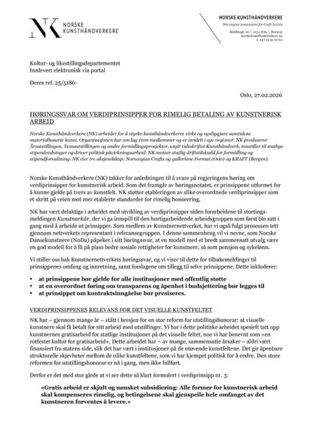 Innspill fra NK og NBK om strømstøtte for kunstnere