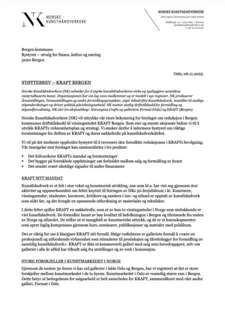 Støttebrev til KRAFT – budsjettkutt Bergen kommune
