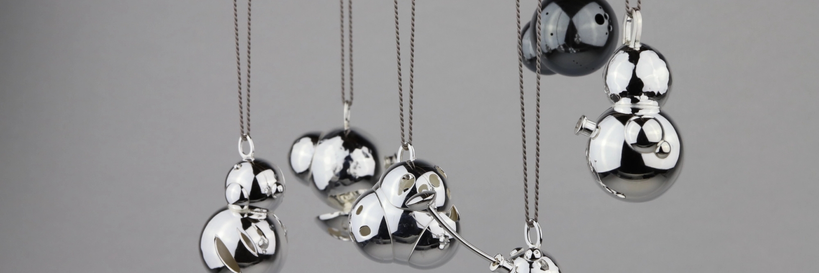 Pupulus nivalis, Snowman- series. 2020-2021 I wanted to make snowman in a cold November day but snow was dry and loos. So I decide to make them in silver. I had a lot of left overs, silver half ball w…