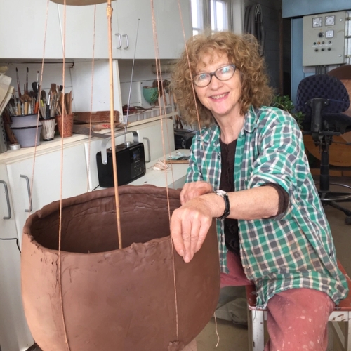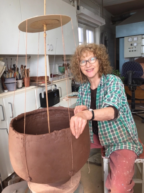 Jeg har i mange år arbeidet med store krukker som aktiverer spenningen mellom rom og flate, virkelighet og illusjon. Krukkene har på en måte blitt bilde og skulptur på samme tid. Krukken som arketypisk form, som beholder, som symbol og som skulpturell form fascinerer og inspirerer meg. Derfor bruker jeg ofte krukken som referansepunkt i mine arbeider. Overgangen fra krukke til skulptur er glidende - når er det krukke, når er det skulptur? For meg handler det om å gi form. Kunnskapen om leirens egenskaper og erfaringen med håndverket er betydningsfullt for meg og gir også ideer til nye arbeider.