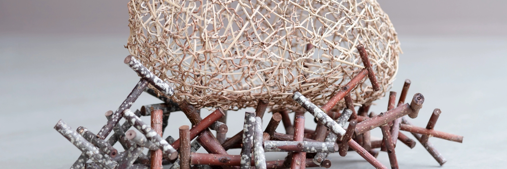 Hidden stone serie fra 2013 til 2019 Flettverk av fruktstenglene fra Phønixpalmen og avbarket pil.