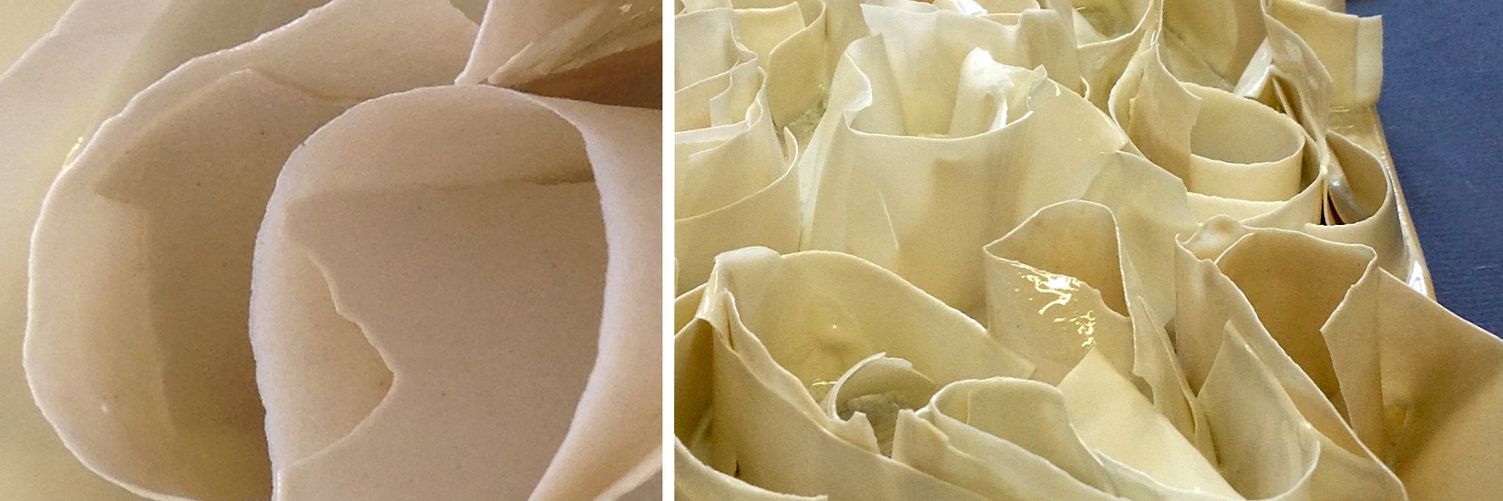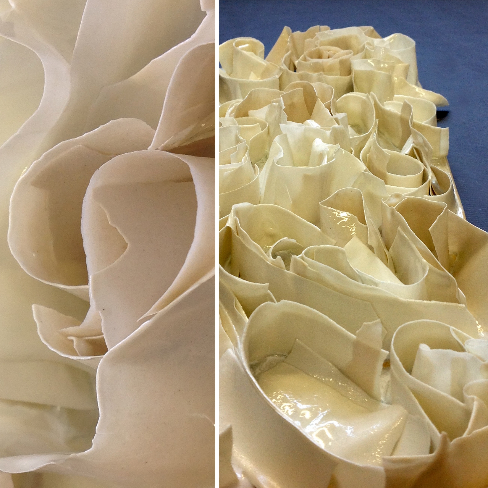 For these new series of porcelain reliefs and objects I translate the act of mending, sewing and decorating into porcelain, reflecting on labour that have been mainly relegated to women.