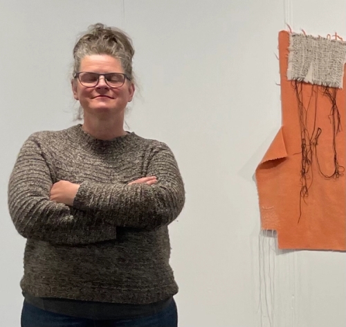 FALSE FLAGS med kneleputeFalse flags er et prosjekt der jeg undersøker bruken av overskuddsmateriale og broderi. Med stoppenål og løse tråder monteres ulike stoffer, teksturer, formater og tegn til fl…