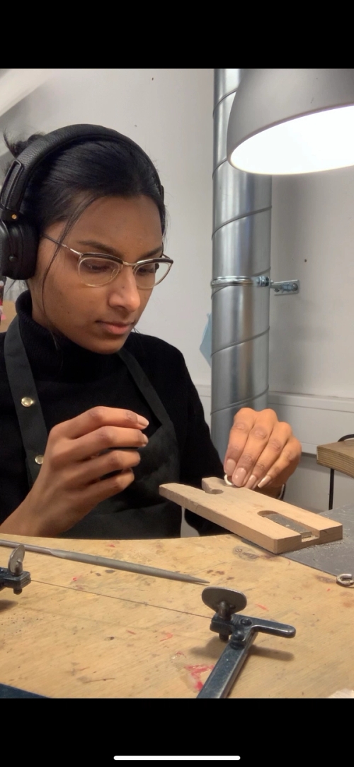By combining her interests of function and fantasy, Shitika’s aim is to create pieces of artwork that not only can be represented on their own as hybrid sculptural objects but can be functional body jewellery such as face masks and body armour. Her aim is to present movement within the static formations. A slight deceptive property to the eye where these formations create an illusion of movement, by presenting elongated shapes that blend into a metal construction. She works a lot with photographing, drawing and repeating the layered process to then transform her drawings into sculptural 3D objects.Her aim is to continue to explore the making and use of recycled plastic in her works.