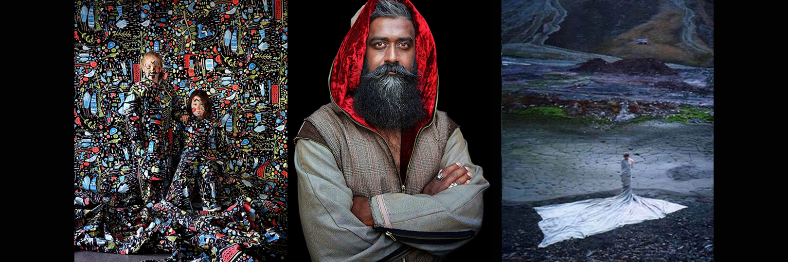 En billedserie av klær laget til div. utstillinger og forestillinger. -Klær av malte stoffer, -i redesign av dresser og bilslanger. Og strikkede plagg.