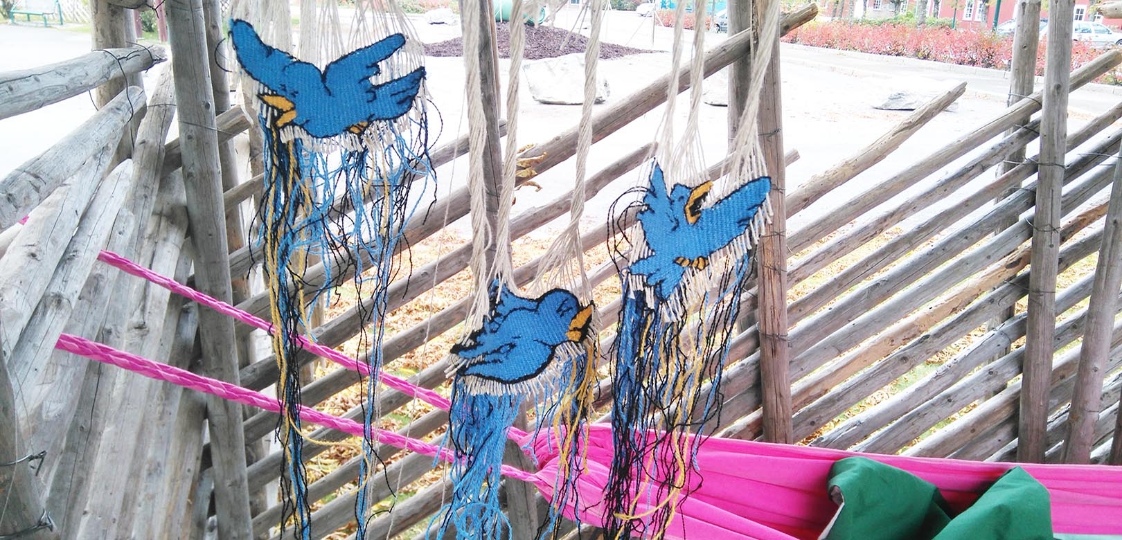 Installasjon, billedvev. Deler er innkjøpt av Akershus fylkeskommune.