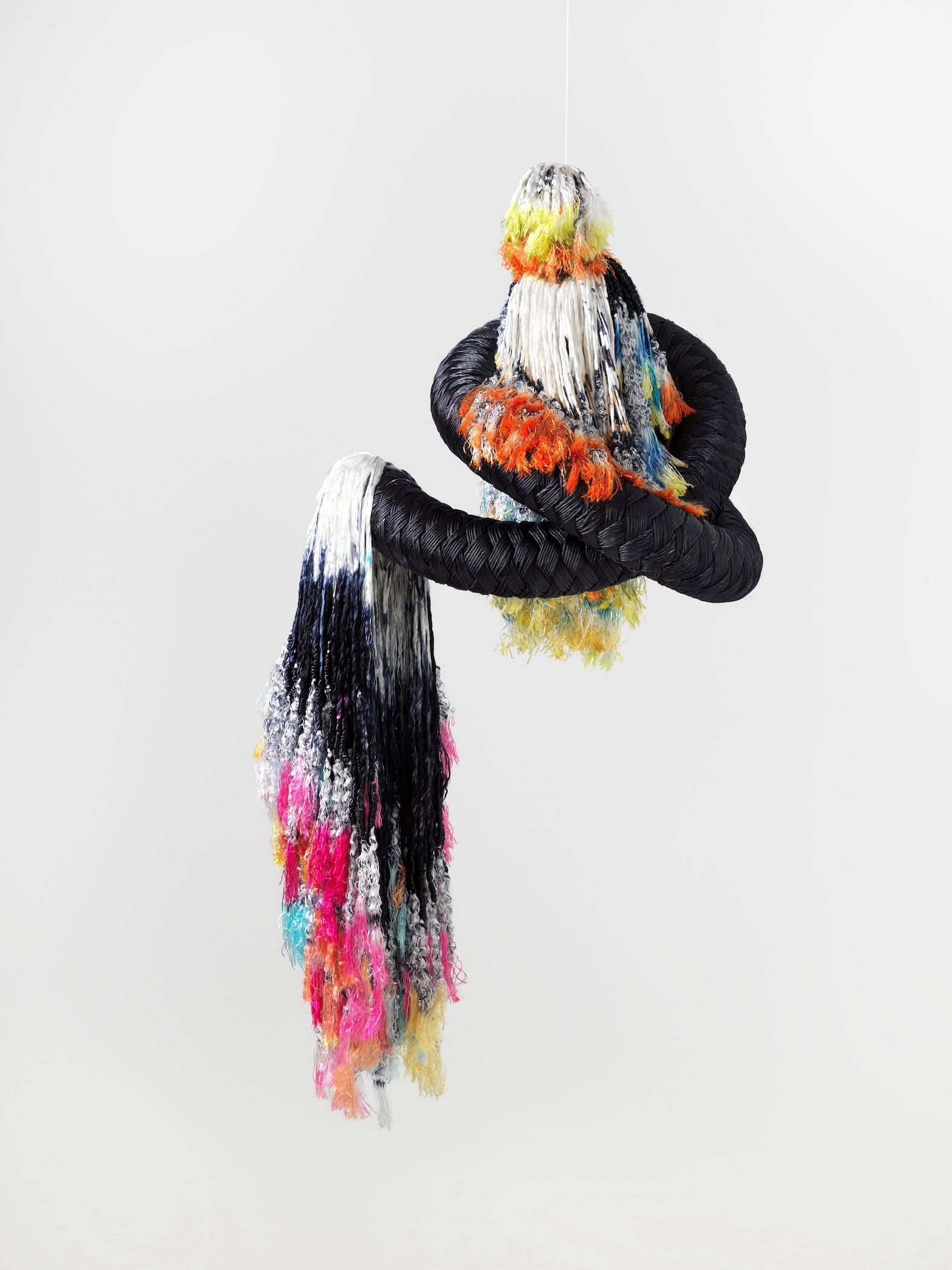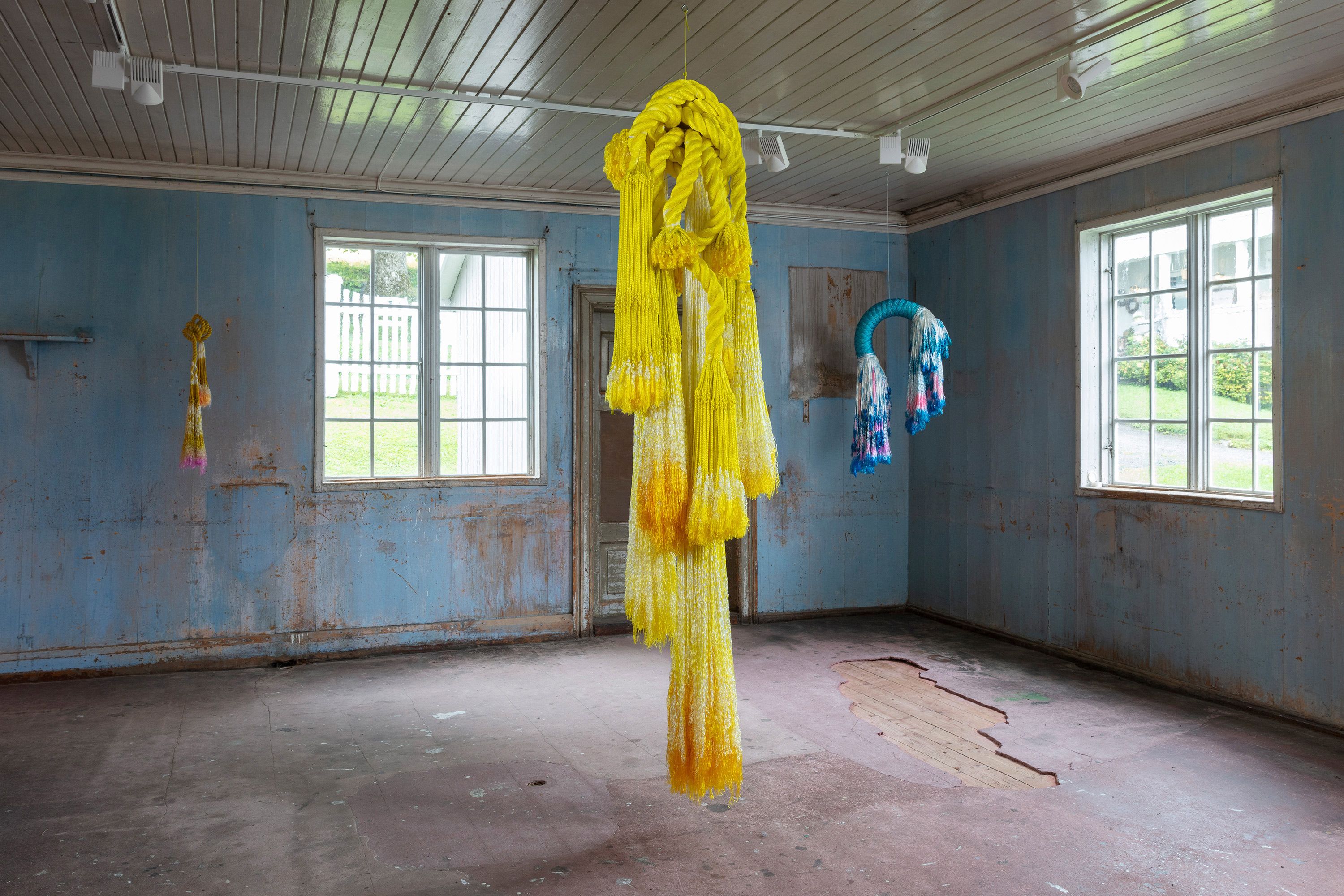 – Jeg arbeider med flettede og 3-slåtte tau og trosser i polyamid som jeg bearbeider til ornamentale flater og skulpturelle former, skriver Ellen Grieg på sin kunstnerprofil. Grieg er for tiden aktuell med utstillingen «Et utålmodig begjær» på Lillehammer Kunstmuseum.