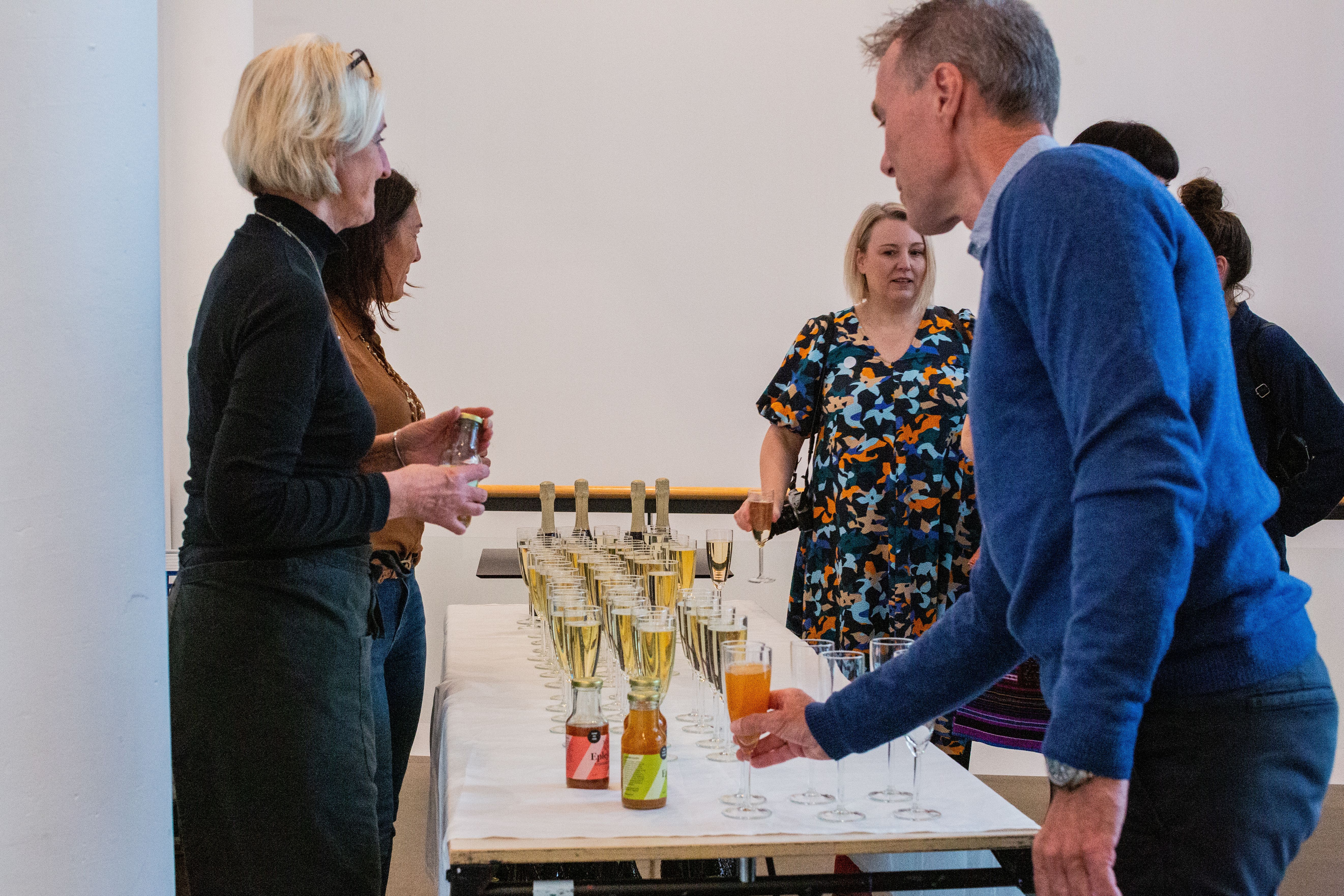 Kurator ved Sørlandets Kunstmuseum, Frank Falch, ledet kunstnersamtalen mellom prisvinnerne i Årsutstillingen. Han skapte en intim og koselig atmosfære, der publikum ble kjent med kunstnerne, deres verk og, ikke minst, deres praksis. Han spurte dem blant annet om prisvinnernes bakgrunn, hvordan de kom inn på feltet og hvorfor, hvordan de vil definere sin egen praksis og hvordan de arbeider.