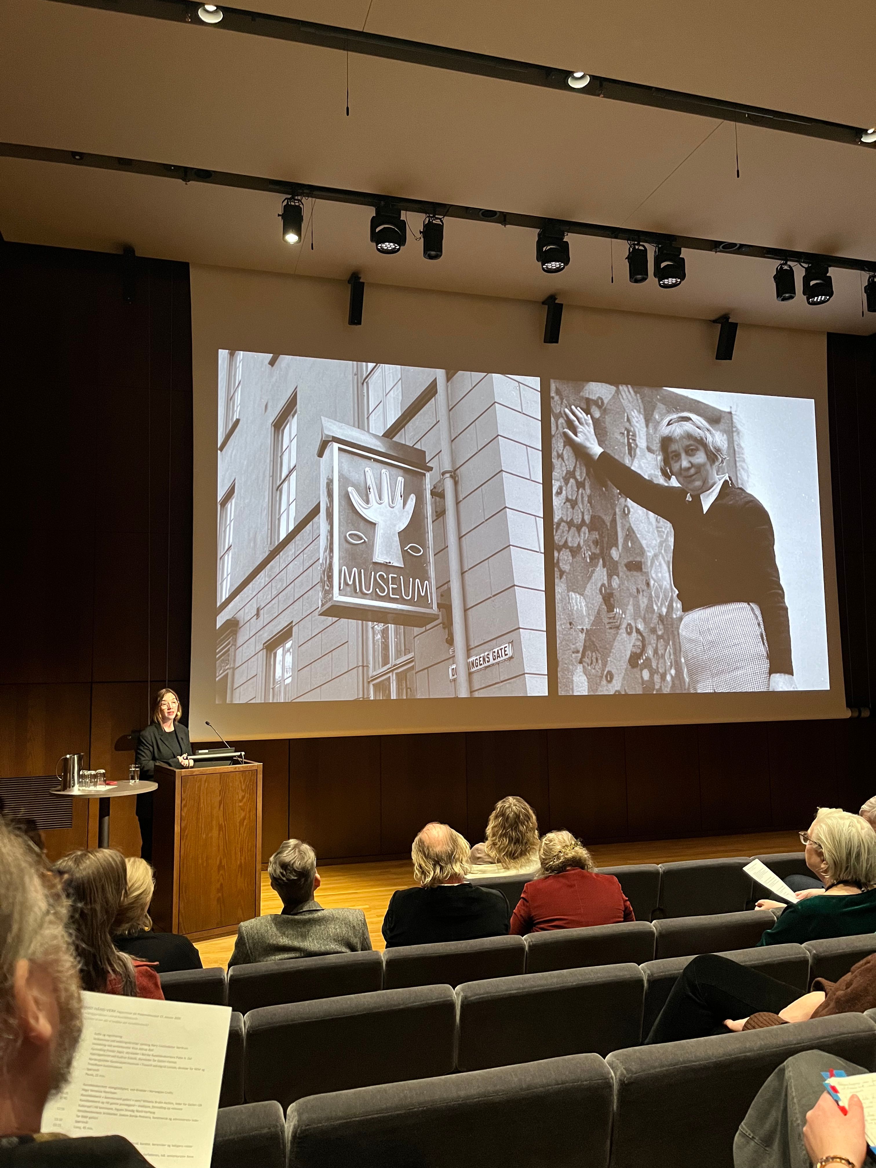 Dagens enkeltinnlegg ble konkludert av formidler ved Nasjonalmuseet, Stine Elisabeth Johansen, som ga publikum et innblikk i hvordan hun formidler utstillingen KUNST.HÅND.VERK til et allment publikum.