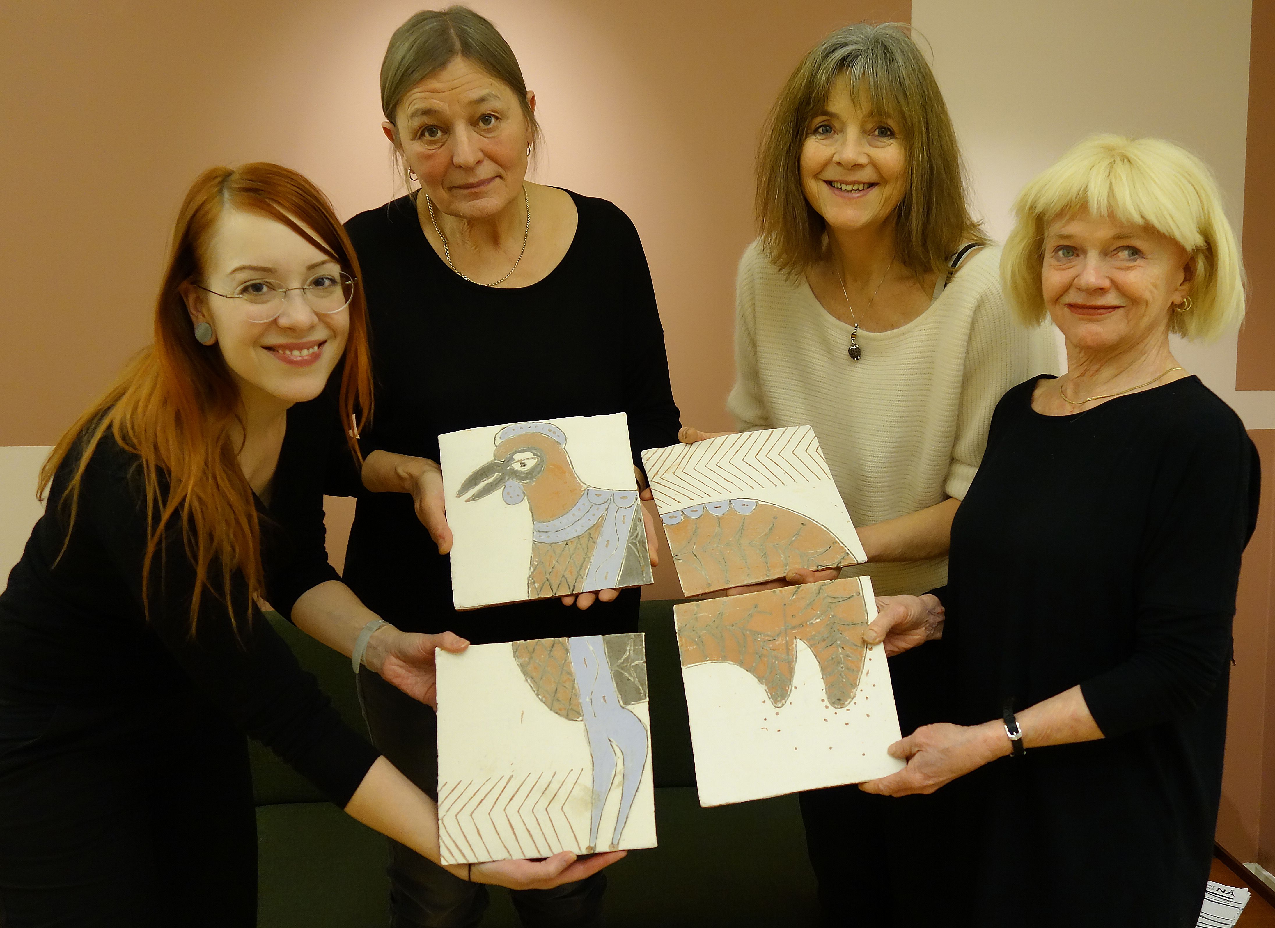 Finn Alsos: "Dyrene våre" (1982), Brente og glaserte fliser i leirgods. Veterinærhøgskolen i Oslo. Foto: KORO