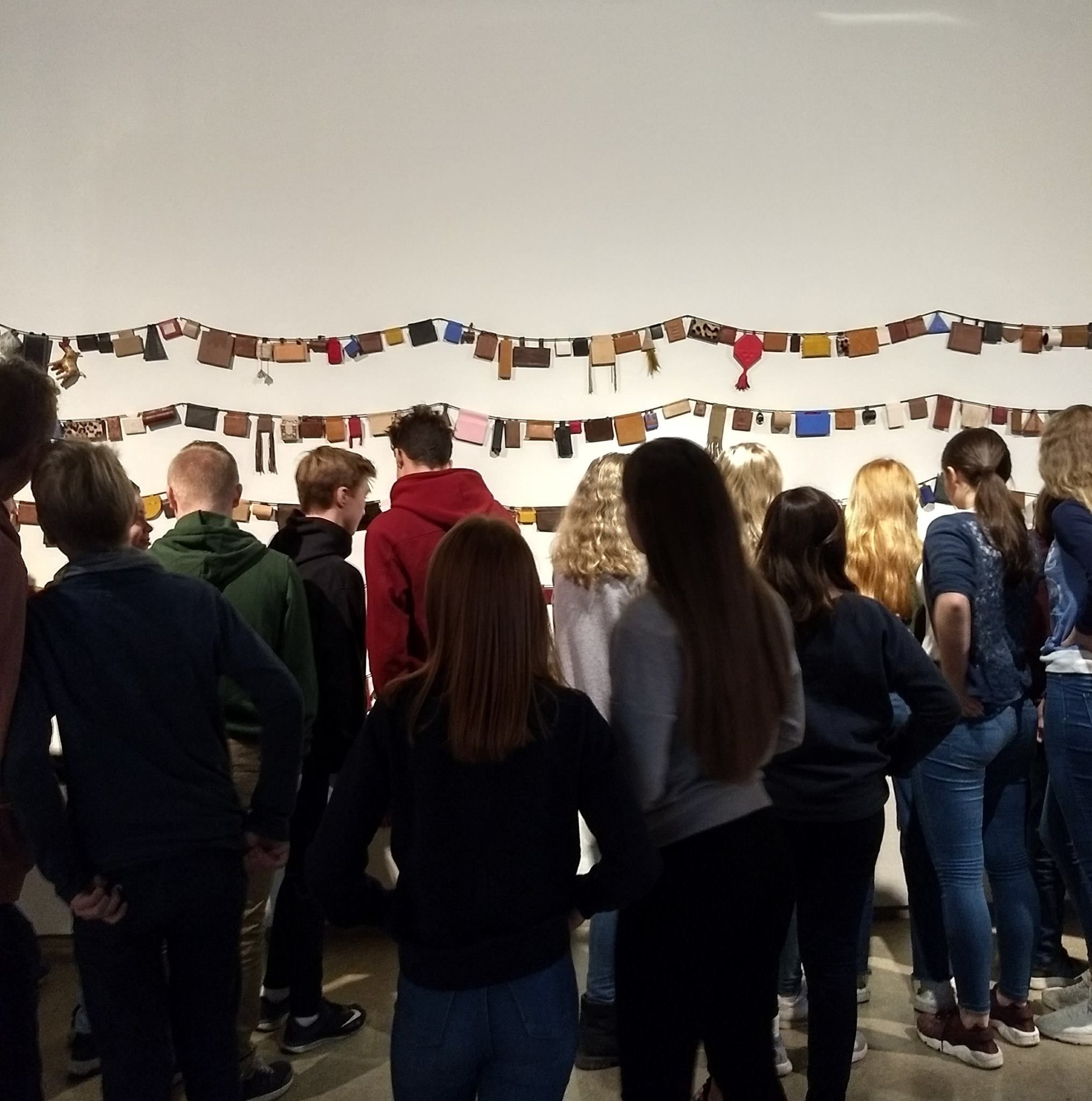 Etter en dialogbasert omvisning i utstillingen, som handler om alt fra håndverksteknikker til miljøproblematikk og flyktningkrise, får 8. klassingene utfolde seg i et kreativt verksted sammen med museets dyktige formidlere.
