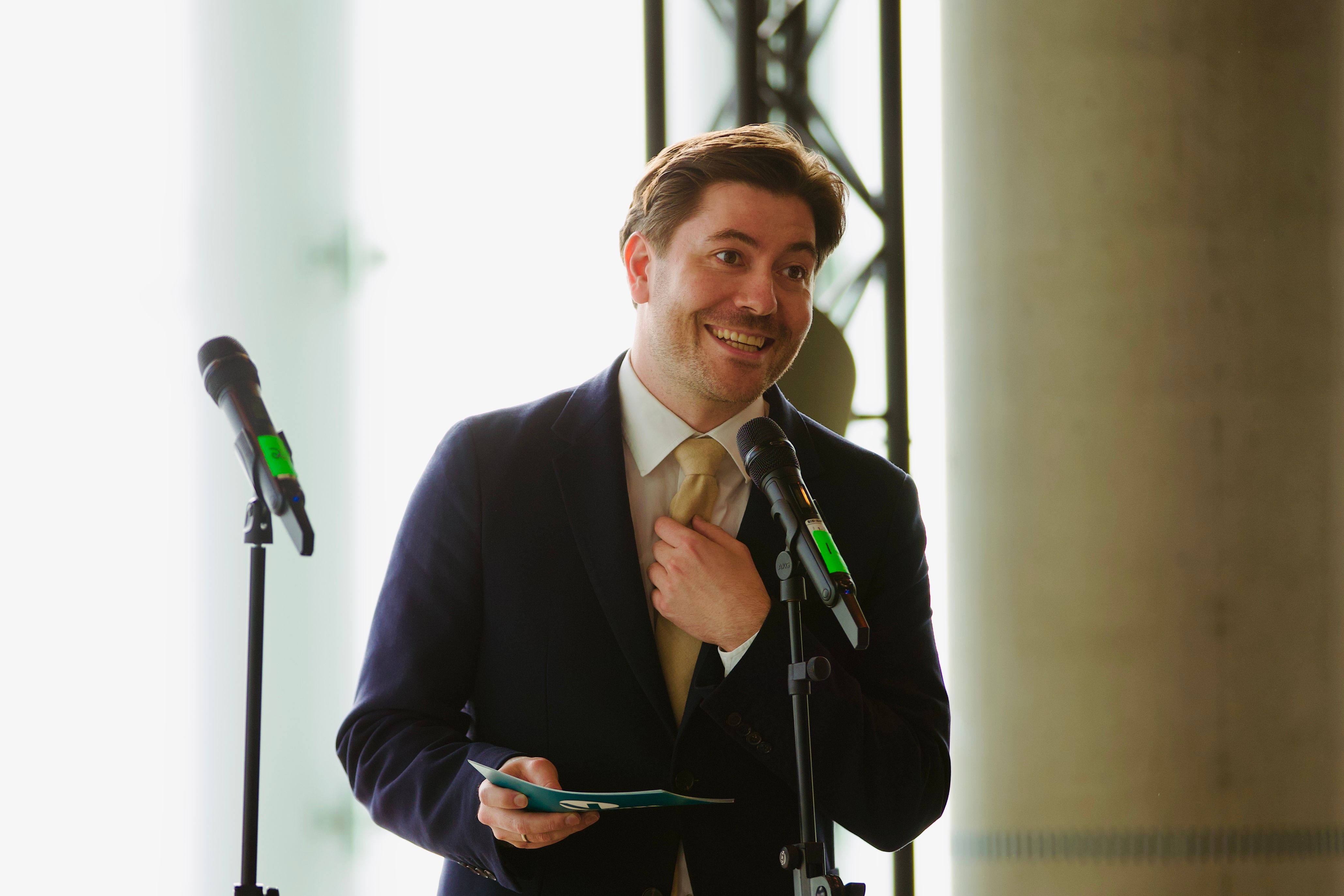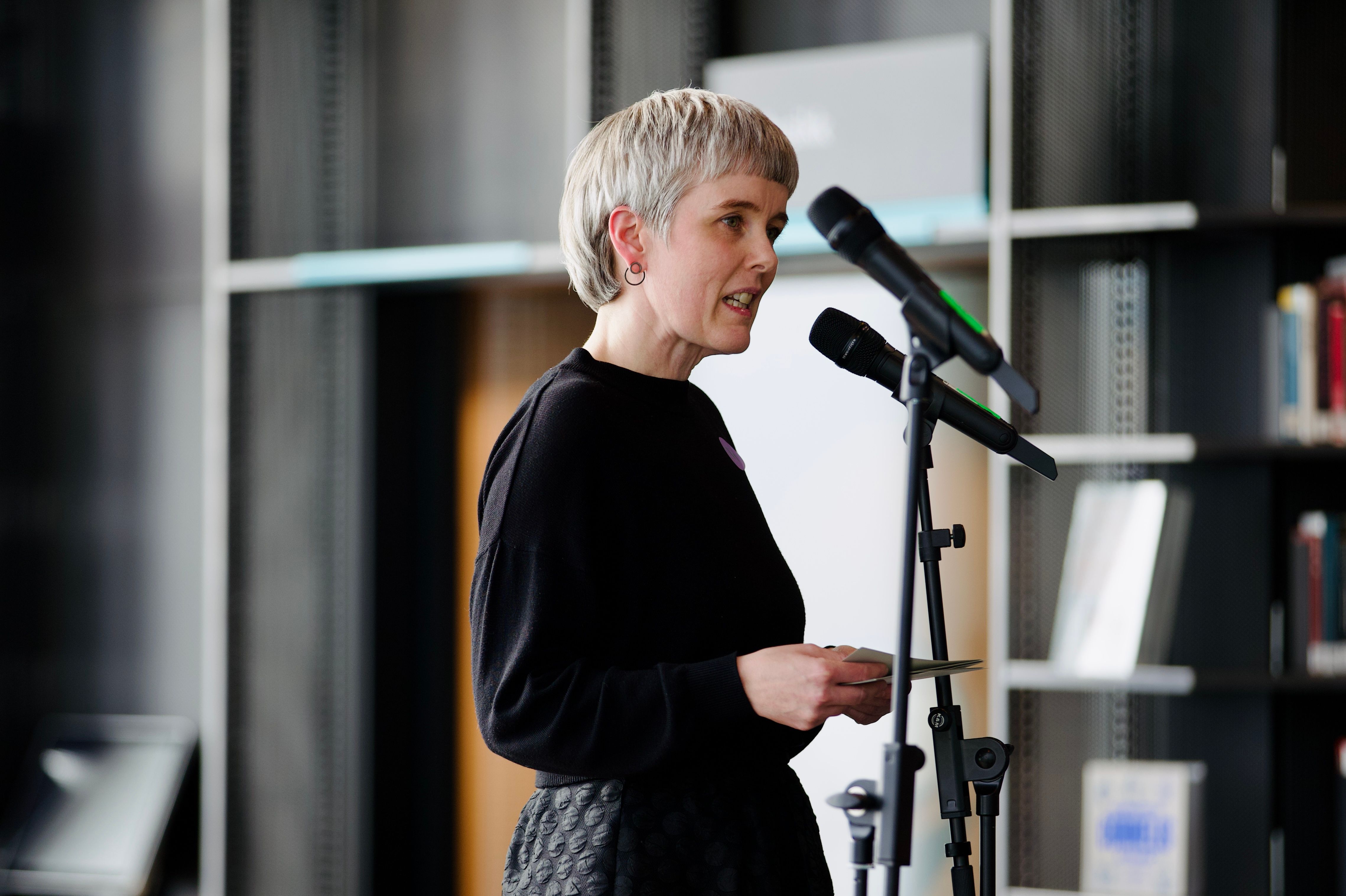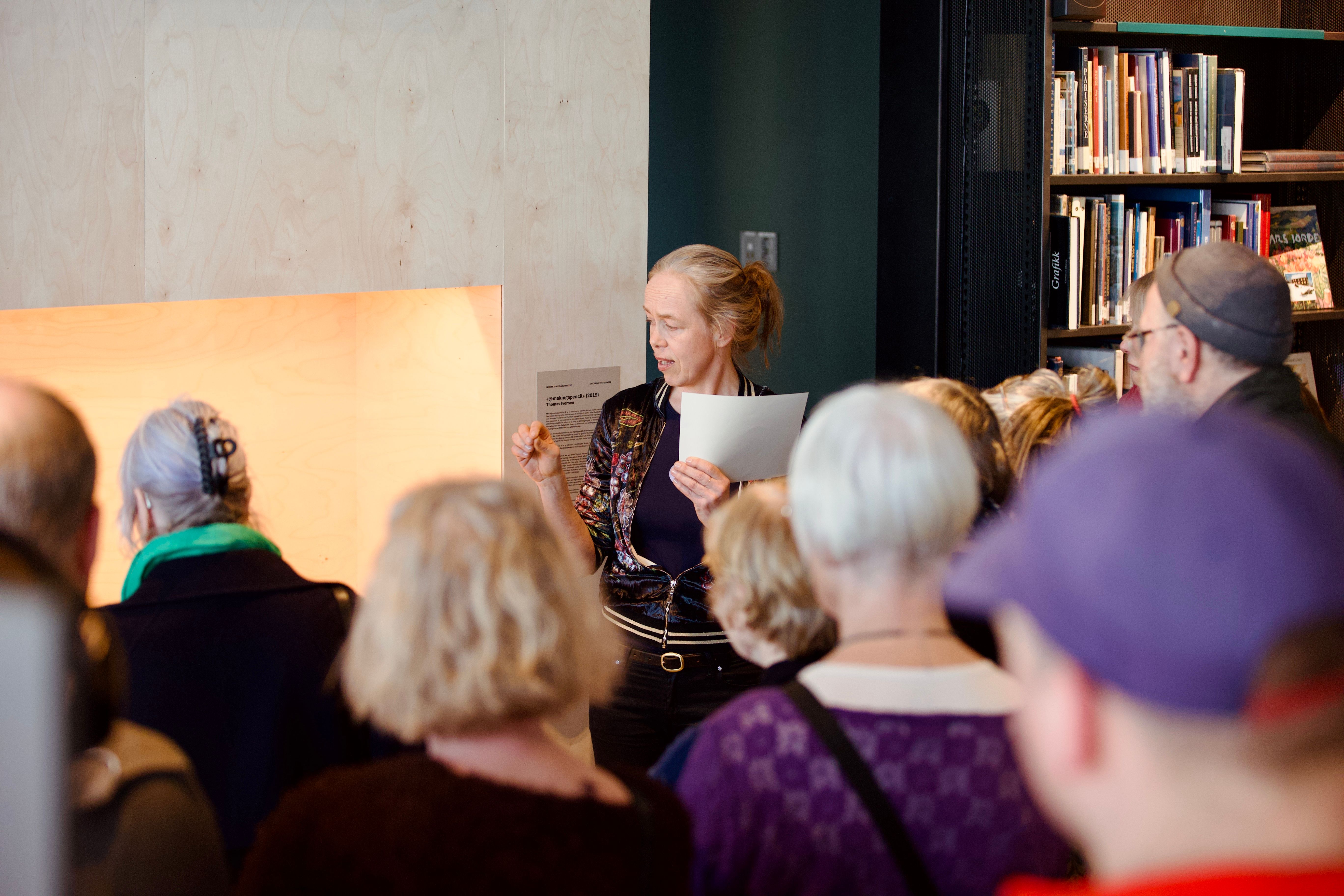 Mange hadde tatt turen til Deichman Bjørvika i Oslo tirsdag 1. april for å overvære åpningen av utstillingen «Skudd, Fangst og u(Ro)», som markerer Norske Kunsthåndverkeres 50-årsjubileum. Arrangementet bød på taler, omvisninger og en imponerende kunstkake.