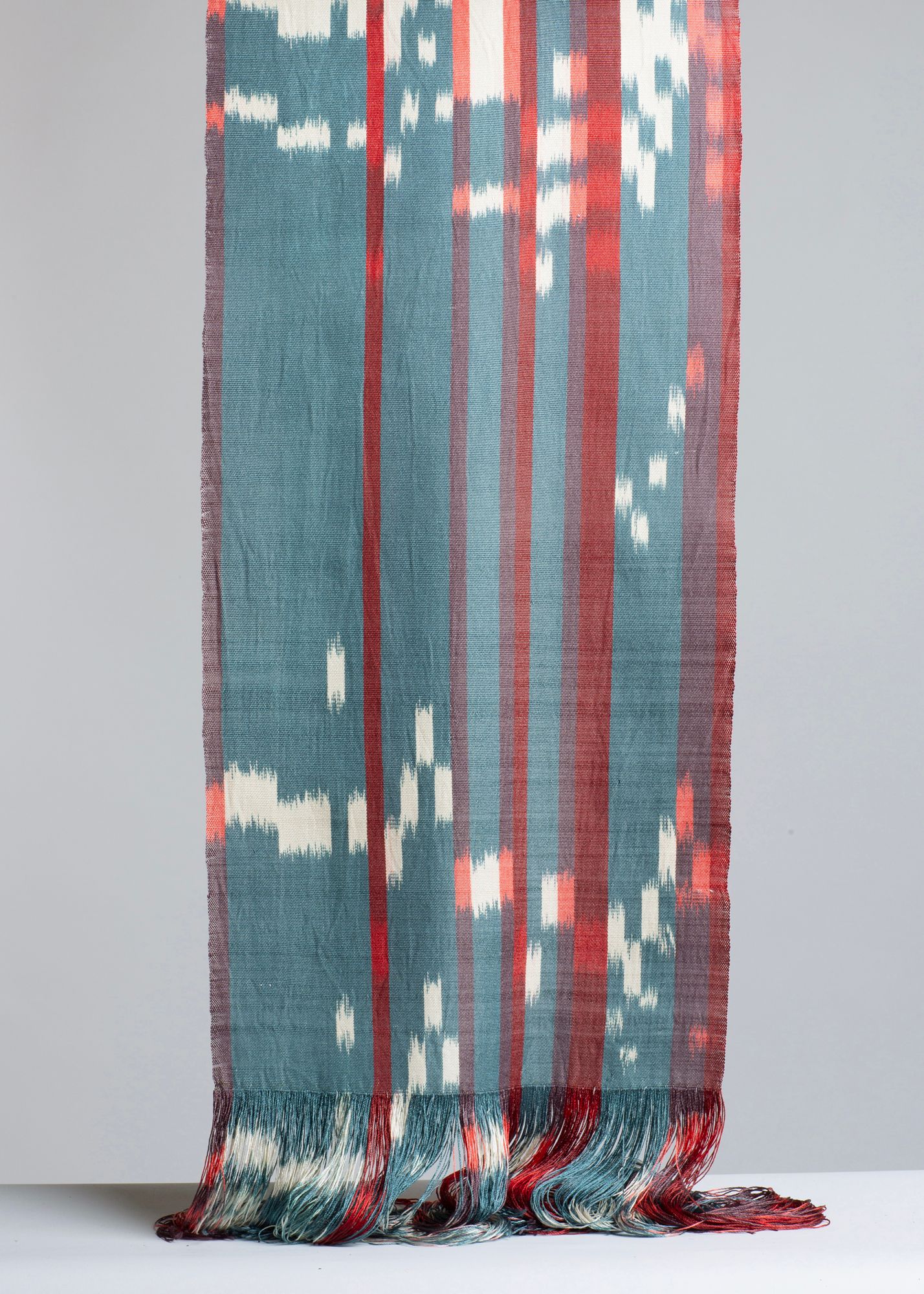 I utstillingen står håndverket som både gjenstand og prosess i sentrum. Fatet, løperen, duken: objekter som inviterer til berøring. Vegghengte verk møter bordflater, som et minne om gamle tradisjoner der bunadssjalet var mer enn pynt. Et sjal var varme og høytid, men også duk for fest, bærestykke for barn – et nødvendig flerbruk.