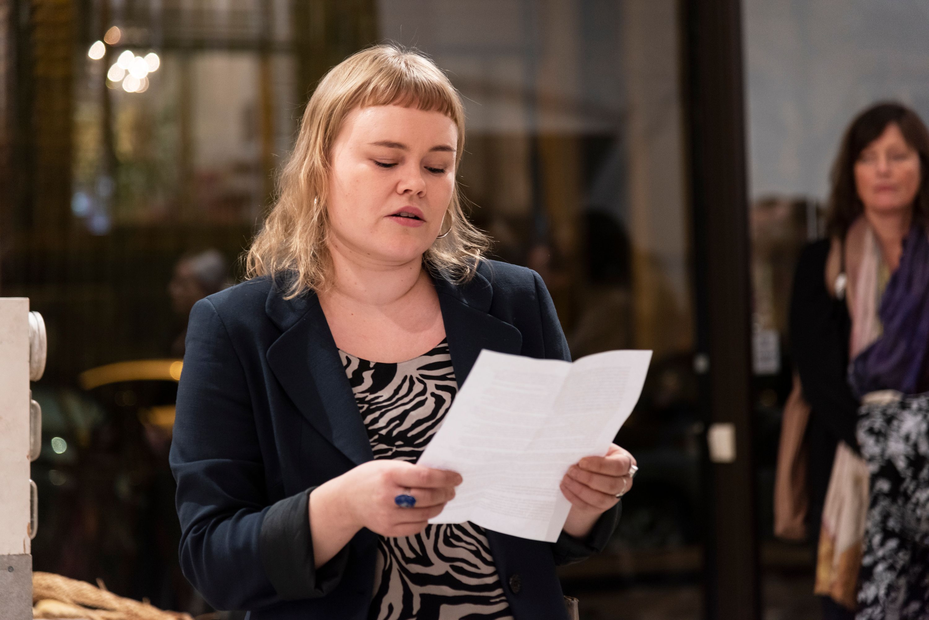 Margrethe Aas debuterte i 2015 med diktsamlingen Vy. Kurator Toril Redalen har invitert hennes inn som observatør av utstillingen og prosjektet for å belyse HUNGER i tekstform. Ingrid Becker er en av kunstnerne som deltar i utstillingen HUNGER. Som kunsthåndverker arbeider hun med tekstil og materialer man finner i naturen. Hun har gjort seg bemerket for sin kunnskap om håndverksteknikker og flettverk i materialer som bark, pil og siv. Denne formiddagen vil Margrethe Aas lese fra sine tekster, mens Ingrid Becker vil demonstrere sin flettekunst i verkstedet.