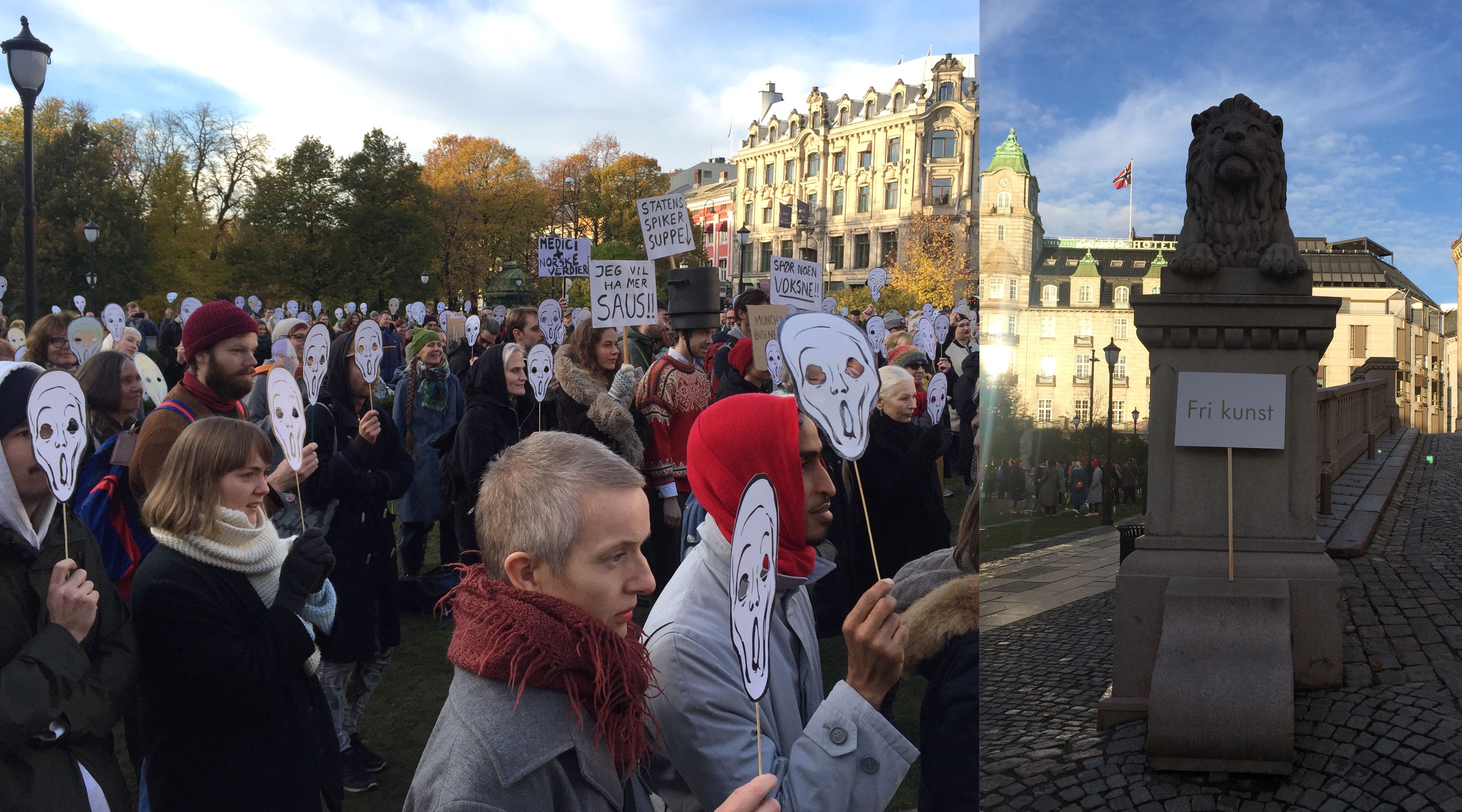 NKs styreleder Hanne Øverland på barikadene under Kunstneraksjonen i oktober 2017. Foto: Åslaug Krokann Berg