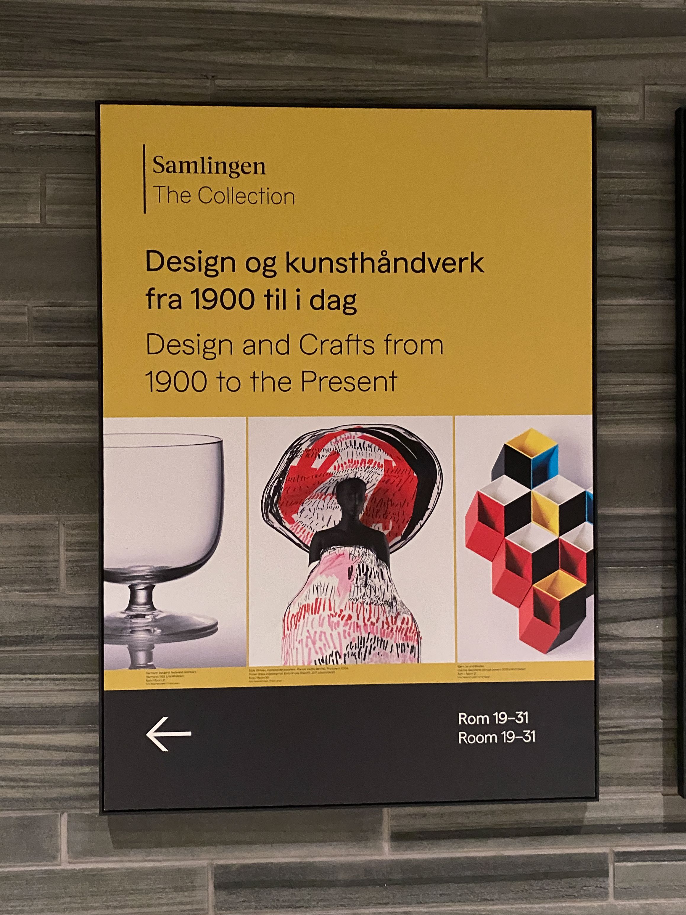 Det er mange gode grunnar til å ta turen til det nye Nasjonalmuseet som opna på Vestbanen for litt over to veker sidan. Ein av dei er at samlingen ved navn "Design og kunsthåndverk fra 1900 til i dag" har stor NK-representasjon og ligger lett tilgjengelig i 1. etasje. Samlingen vises i rom 19-31 og syner som tittelen seier ei samling av design og kunsthåndverk fra dei siste 122 åra.