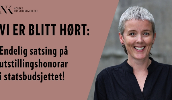 – Nå smir vi mens jernet er varmt, fra behandlingen av Kunstnarkår og statsbudsjettet for 2024, og ber regjeringen øke ambisjonsnivået for utstillingshonorar betraktelig. Jobben er ikke gjort med de ekstra 15 millionene Stortinget gav for 2024: nå trengs friske midler for å gi kunstnere rimelig betalt for arbeidet med utstillinger.