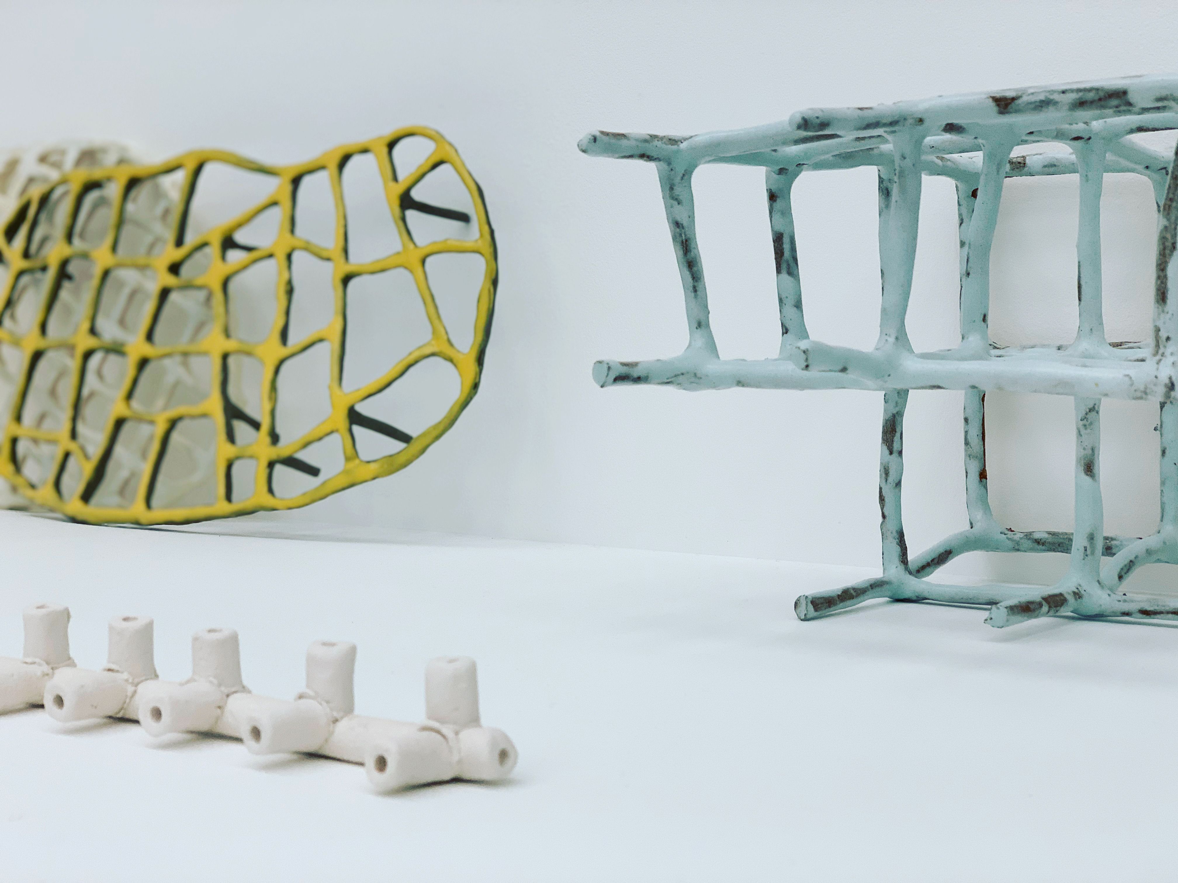 Trude Bergs keramiske strukturer refererer til arkitektoniske elementer, bærekonstruksjoner og armeringsjern. Arbeidene utforsker kompleksiteten i den menneskelige væren og våre interaksjoner. Strukturene viser til det som ofte blir oversett eller det som blir ansett som ubetydelig og verdiløst, og stiller spørsmål ved de tilsynelatende hierarkiske forholdene mellom det emosjonelle og det logiske – og mellom det solide og det sårbare.