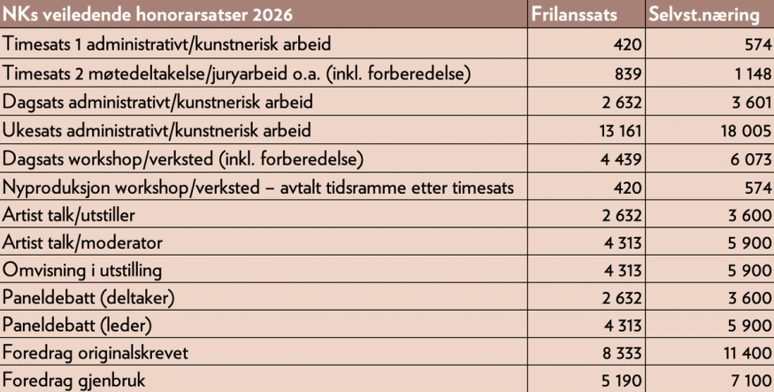 Les mer om NKs honorarsatser og arbeid med reformen for utstillingsøkonomi under tips og råd.