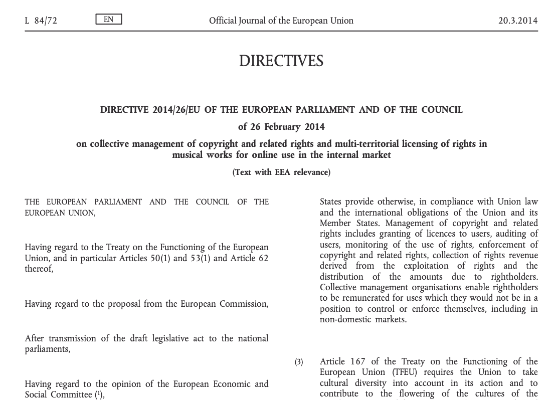 Kulturdepartementet la i november 2020 frem et forslag til en ny lov om kollektiv forvaltning av opphavsrett for Stortinget. Dette var en oppfølging av CRM-direktivet vedtatt i EU i 2014 (CRM står for Collective Rights Management). Loven trådte i kraft 1. juli 2021 og gjelder for vederlag innkrevd fra og med 2022.