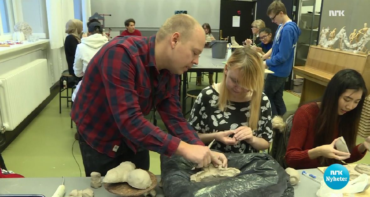 - Elevene har uten sidestykke vært fantastiske å jobbe med. De har fra starten vært fokusert og dedikert til oppgaven med å lage skulpturer. Med sin begrensede forhåndskunnskap til keramikk har de alle gått ivrig i gang med sine prosjekter, noen mer ambisiøse enn andre og jeg som lærer har virkelig blitt utfordret på det byggetekniske. Problemet med å lage innviklede skulpturer er ofte at de trenger tid til å tørke for å bli stabile nok til å bygge videre på. Med vårt begrensede tidsrom har vi sprintet oss gjennom denne prosessen med grillpinner og hårføner, avslutter Darbu som gjerne skulle hatt mer tid til å gå enda mer i dybden.