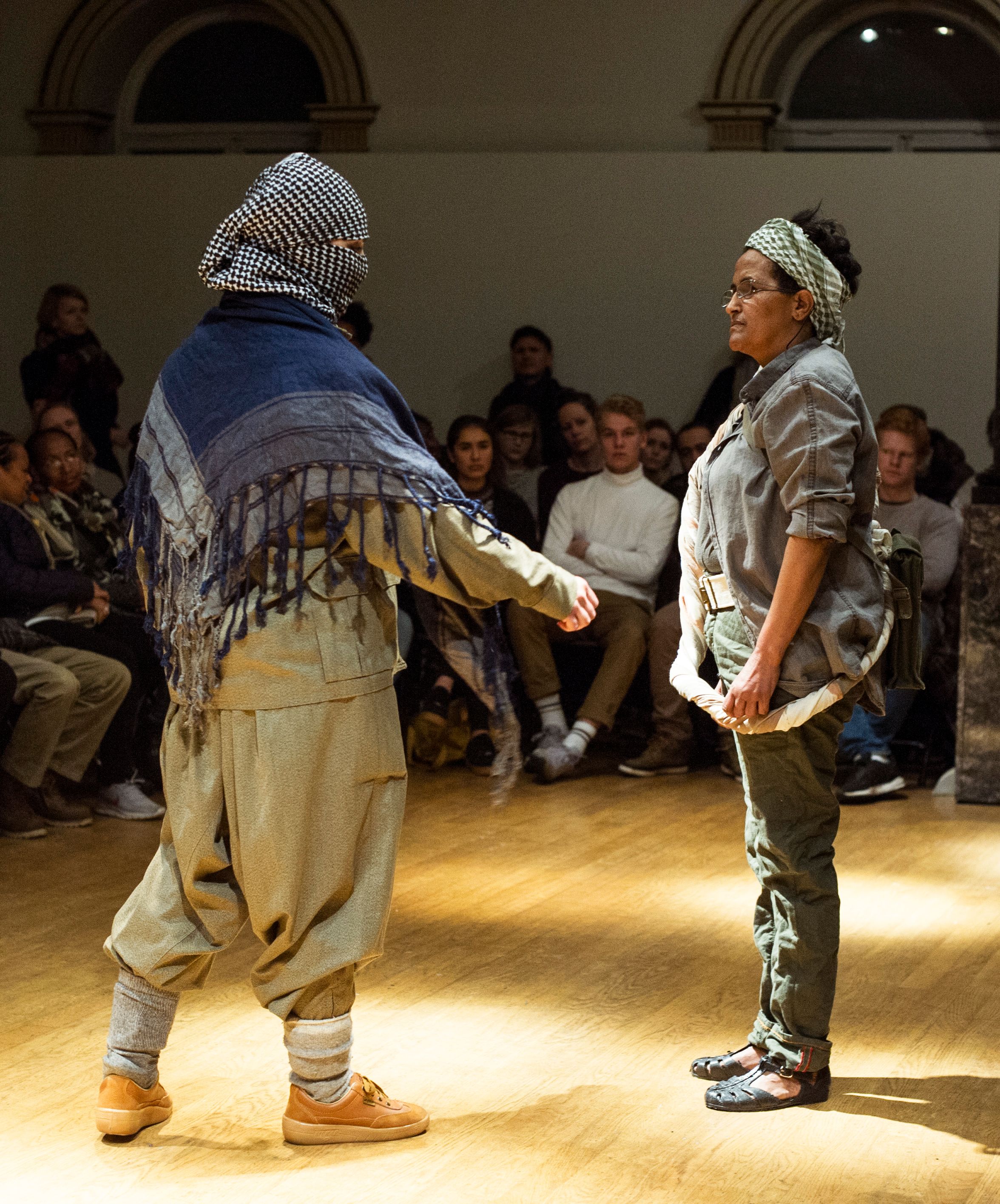 I etterkant av performansen arrangerer kunstneren erfaringsutveksling med publikum, der publikum bes om å dele erfaringer rundt temaene bruk av tekstiler, frigjøringskamp og feminisme.