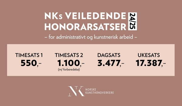 NK fører aktiv dialog med visningssteder på det visuelle feltet både om honorar og vederlag, og har fra 2024 egne veiledende satser for kunstnerisk arbeid. Dette er ressurser som kan være nyttig i det videre arbeidet, mener Dal: