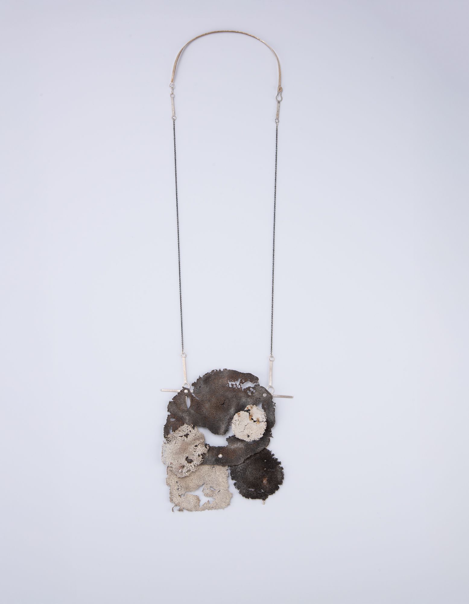 – Når materialet er så utarmet at det sprekker. Når sølvets opprinnelige egenskaper har gått tapt og det henger sammen mest på trass. Som et menneske som har gått i veggen uten å innse det selv. I dette arbeidet, som har fått tittelen «Jeg klarer ikke holde det sammen lenger», er det mange deler som er så skjøre at jeg hele tiden jobber med en letthet i fingrene for ikke å ødelegge noe, samtidig som det er en spenning i kroppen av redsel for å ødelegge noe.