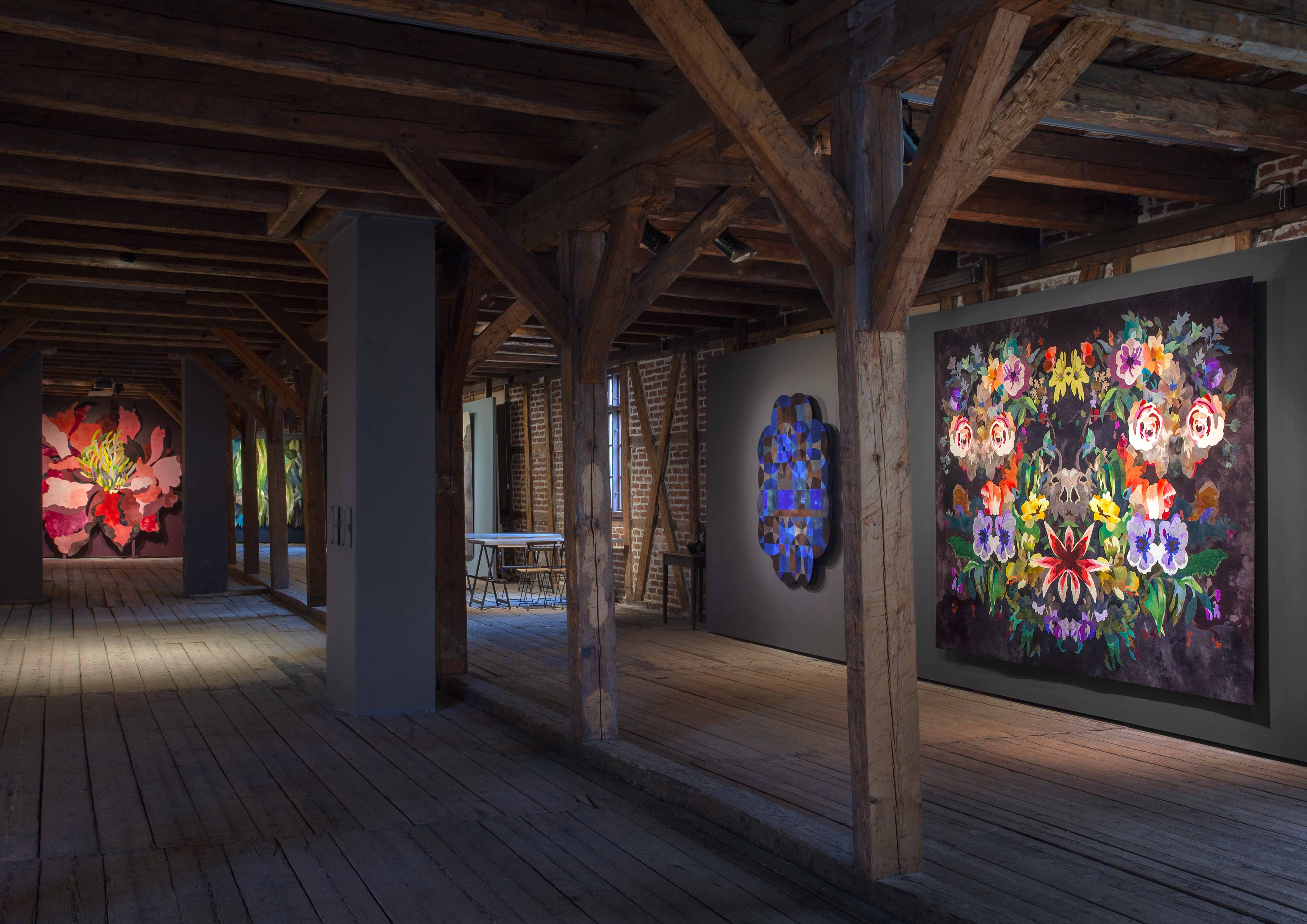Utstillingen "Gjenfortellinger" består av flere store fargesterke bilder i monumentalformat. Bildene er bygget opp med utgangspunkt i mønster brukt i tekstiltradisjonen. I Rasmussens gjengivelse er mønstrene drevet opp i farge og størrelse, de dramatiseres, endres og tilføres elementer, eller noe mangler. Ser man etter, vil man finne at bruks- og pyntetekstiler alltid har et innbygget ønske om å gjøre ting vakrere, varmere, renere, mykere, gladere, eller rett og slett bedre. Møte mellom denne håpefulle og vennlige holdning, og andre måter å påvirke omgivelsene, eller gjengi virkeligheten på, skaper spørsmål. Blant annet om hva som er sant. Det er her Rasmussen finner sine historier. Les anmeldelse av utstillingen i Dagsavisen her.
