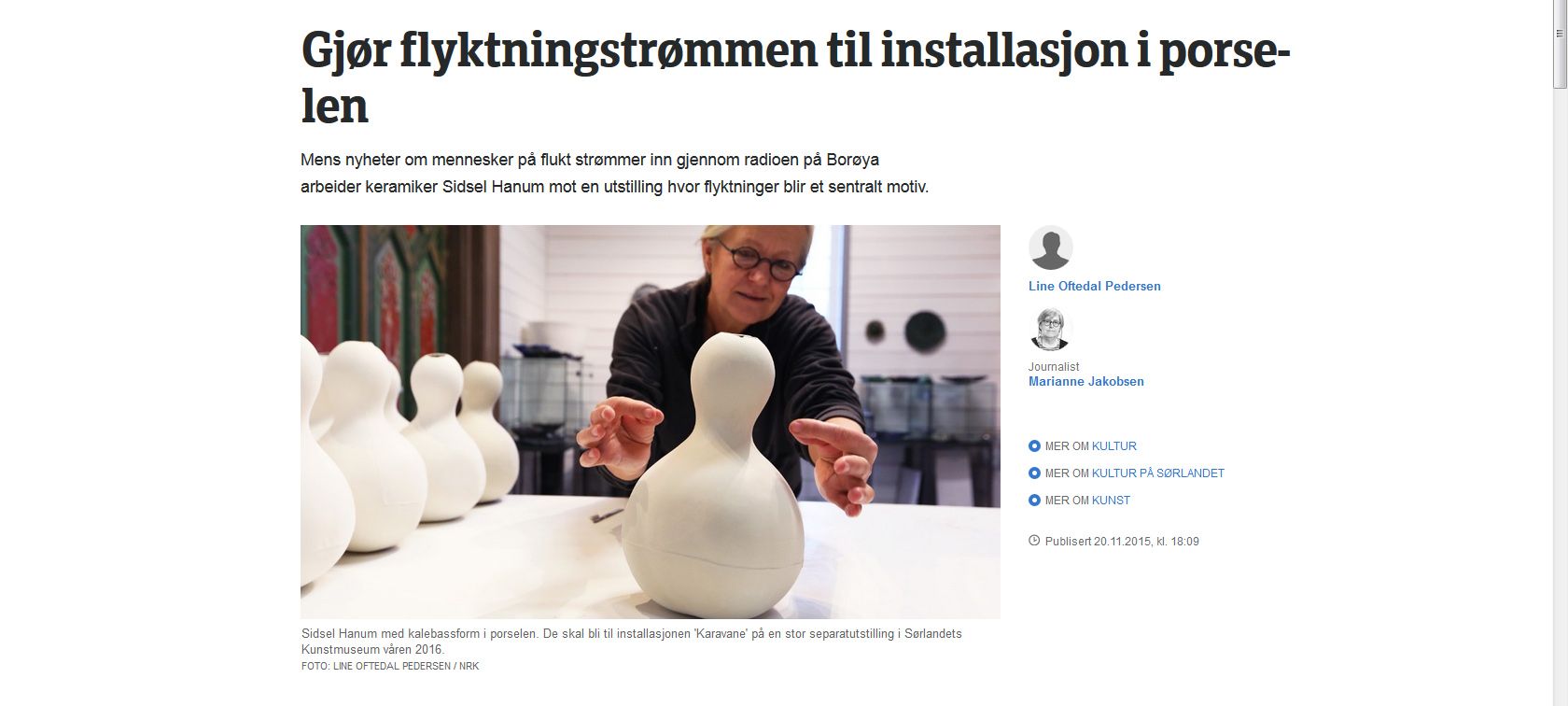 Kurator Else-Brit Kroneberg ved Sørlandets Kunstmuseum sier til NRK at Hanum-utstillingen blir den viktigste i museet våren 2016.