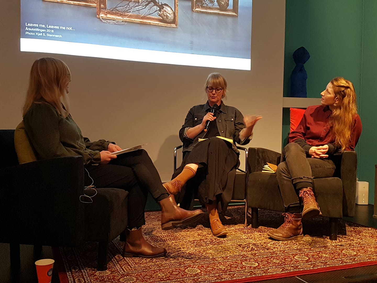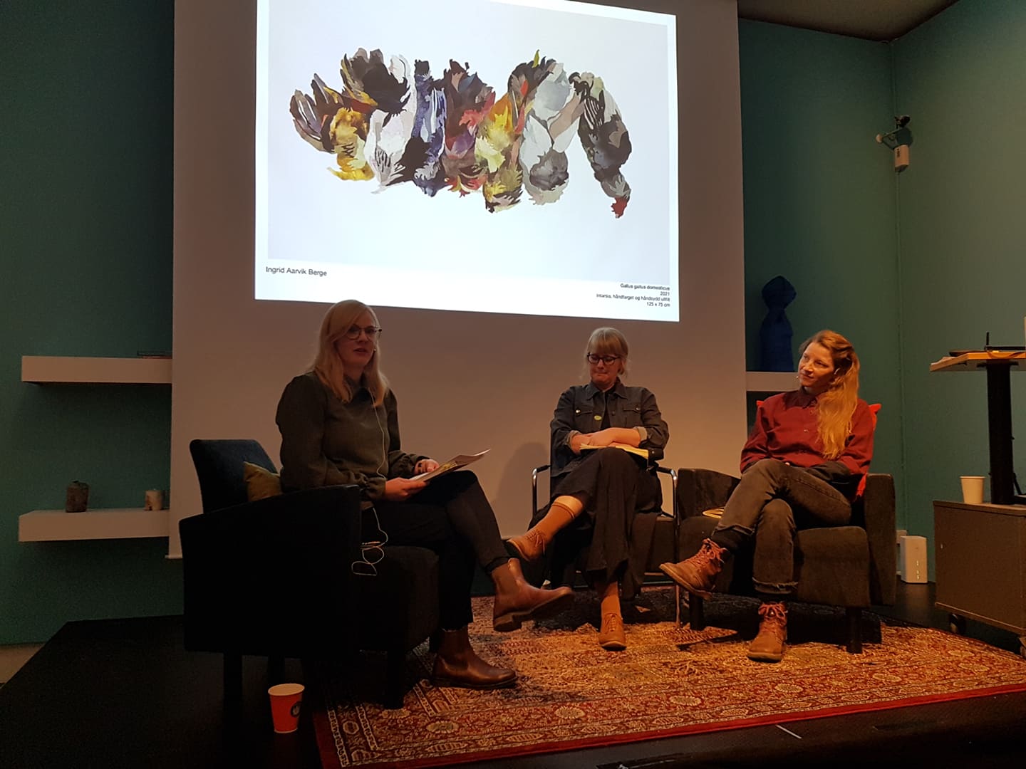 Lørdag var det omvisning i utstillingen og familieverksted med inspirasjon fra kunstnar Siri Skjerve, og søndag arrangerte Norwegian Crafts kunstnersamtale med tittelen On Making, Matriarchs and Mapping. Moderator Marcia Harvey Isaksson tok ein prat om krafta i tekstile teknikker med kunstnarane Karen Lidal og Monika Mørck. Også dette arrangementet blei direktesendt på Facebook, og opptaket er sjølvsagt tilgjengeleg for dei som ikkje fekk det med seg her.