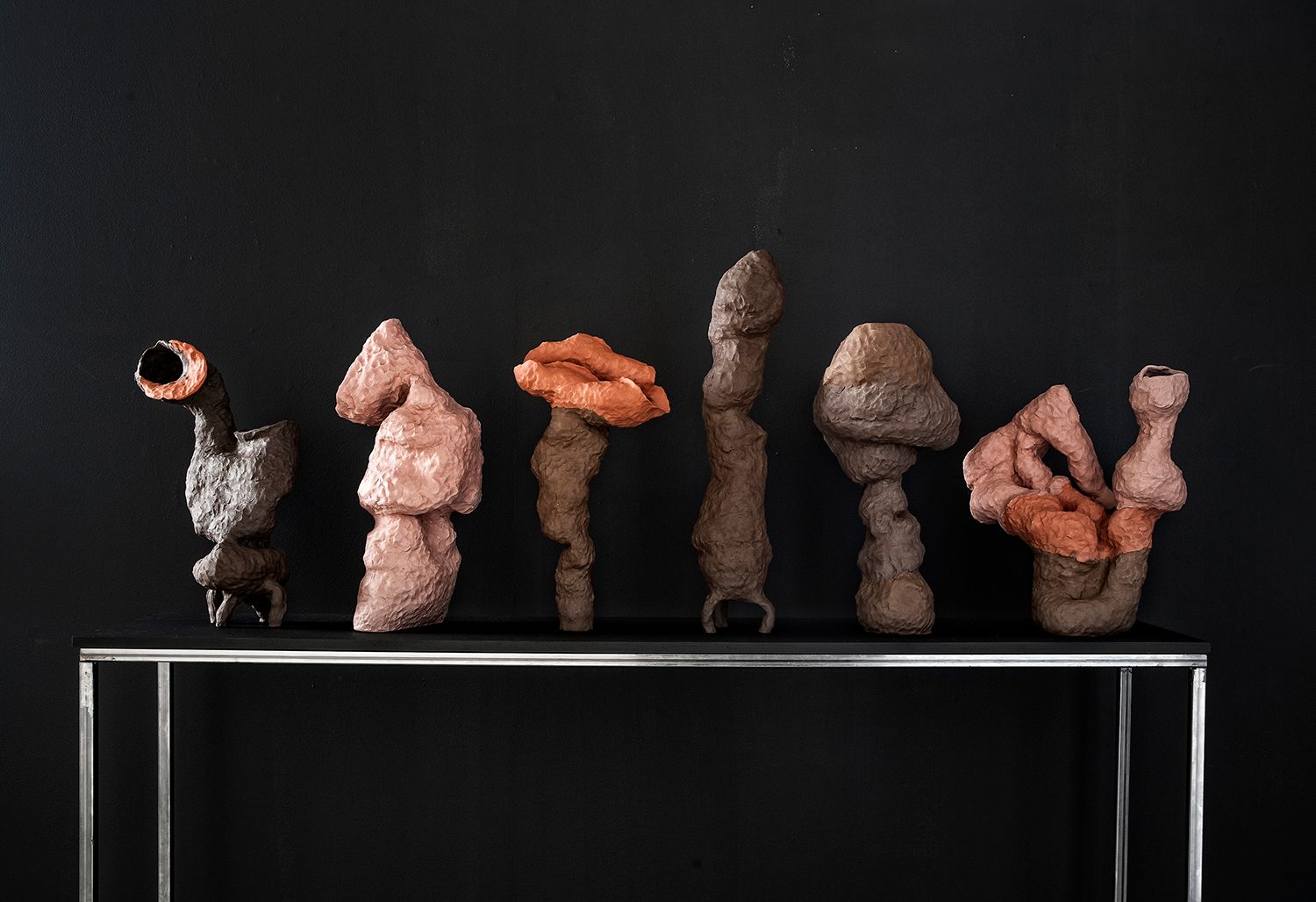 - Jeg har en fascinasjon for leirens fleksible og kompromissløse egenskaper, hvori jeg undersøker ideer knyttet til balanseog vekstprinsipper. I dialog med leiren oppstår primitive former av sanselig og kroppslig karakter, og henvisningen til krukken som beholder og beskytter av et indre ligger nær.