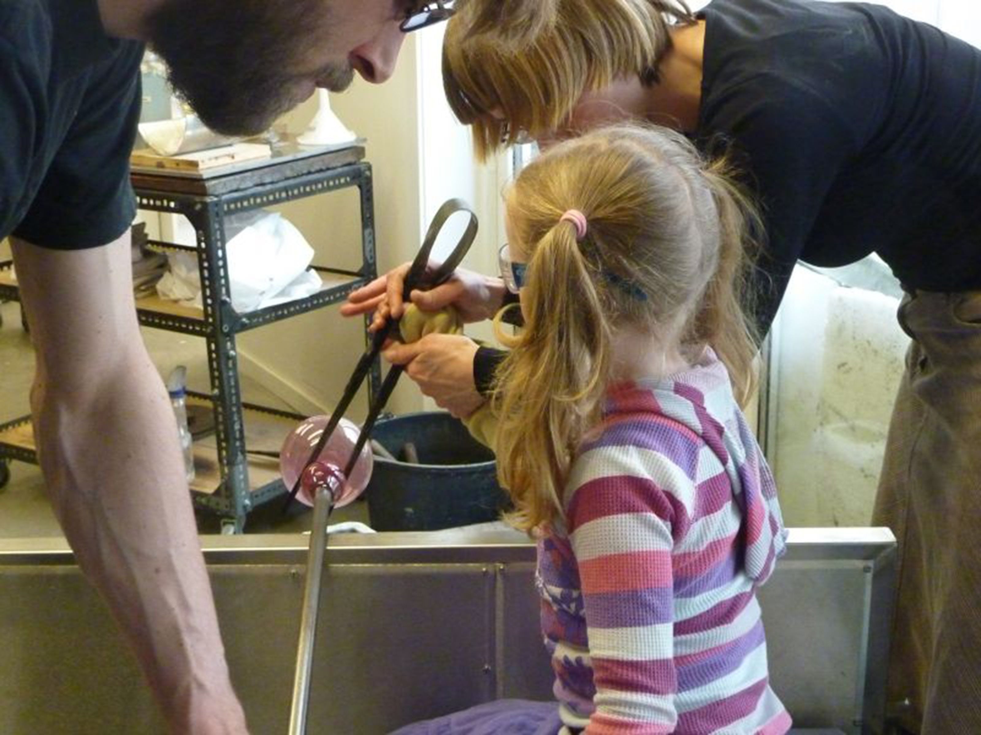Familieverkstedet er en kreativ og hyggelig aktivitet for hele familien. I familieverkstedet vil barn og voksne sammen få mulighet til å skape ulike bilder, figurer og former i glass. Vi arbeider med teknikken “fusing” som er å pusle sammen glassbiter i ulike former og farger før man smelter dem sammen i en ovn.