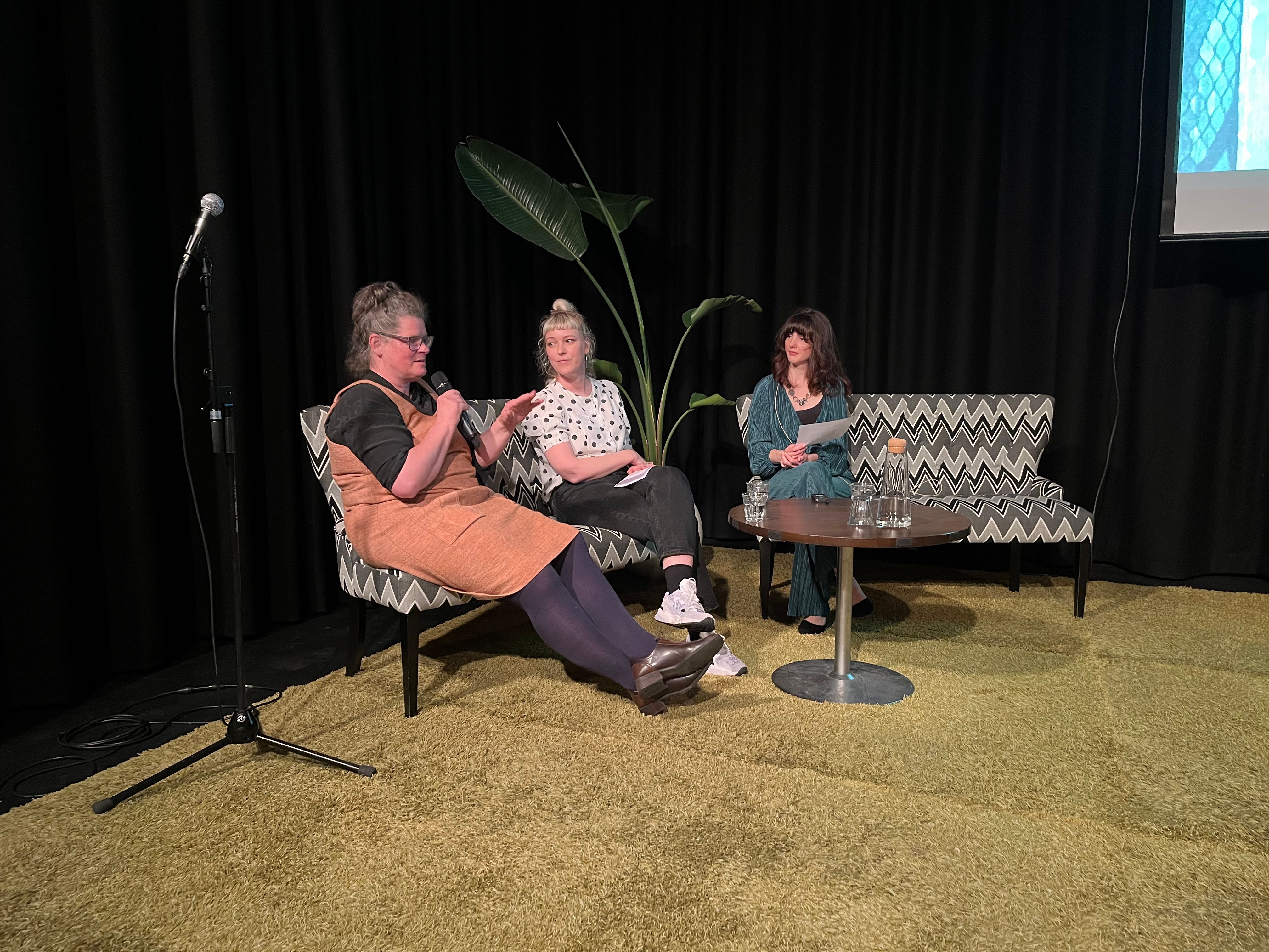 Etter åpningen var det duket for symposiet «Håndfast – symposium for samfunnsengasjert kunst» på Kulturhuset i Svolvær. Prosjektleder Sylvia Henriksen og Sophie Berenika Borch, begge fra styret til NK Nord-Norge, ønsket alle velkommen. Deretter holdt daglig leder i NK, Lise Stang Lund, velkomsttale som tok for seg det politiske arbeidet og aktivisme på kunstfeltet, både med historiske og personlige anekdoter.