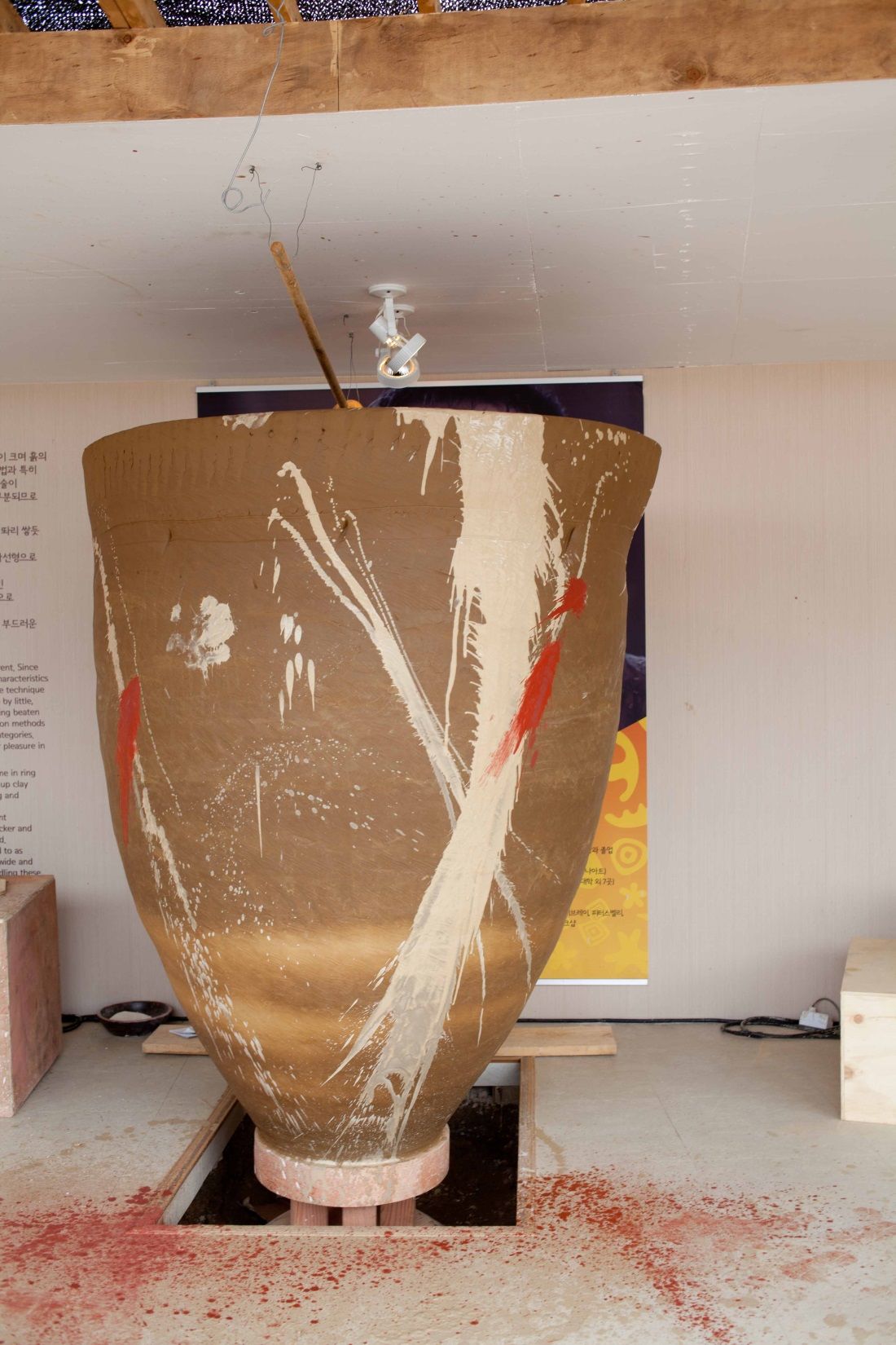 Til det første artist-in-residence oppholdet i Ringebu Prestegard inviteres leirekunstneren Hyangjong Oh, og Nari Kwon som også er kunstner og assistent for Oh. Sammen skal de bygge en installasjon i rå leire i Fjøset, som vil være utgangspunkt for sommerens utstilling i Fjøset 2019. En gruppe på fire studenter fra keramikkavdelingen på Kunsthøgskolen i Oslo (KHiO) assisterer under ledelse av høgskolelektor Sigrid Espelien. Bygging av installasjonen skjer 20.–31. mai, med utstillingsåpning 1. juni. Prosjektet er åpent for publikum under byggingen, og for kolleger som vil observere og/eller delta.