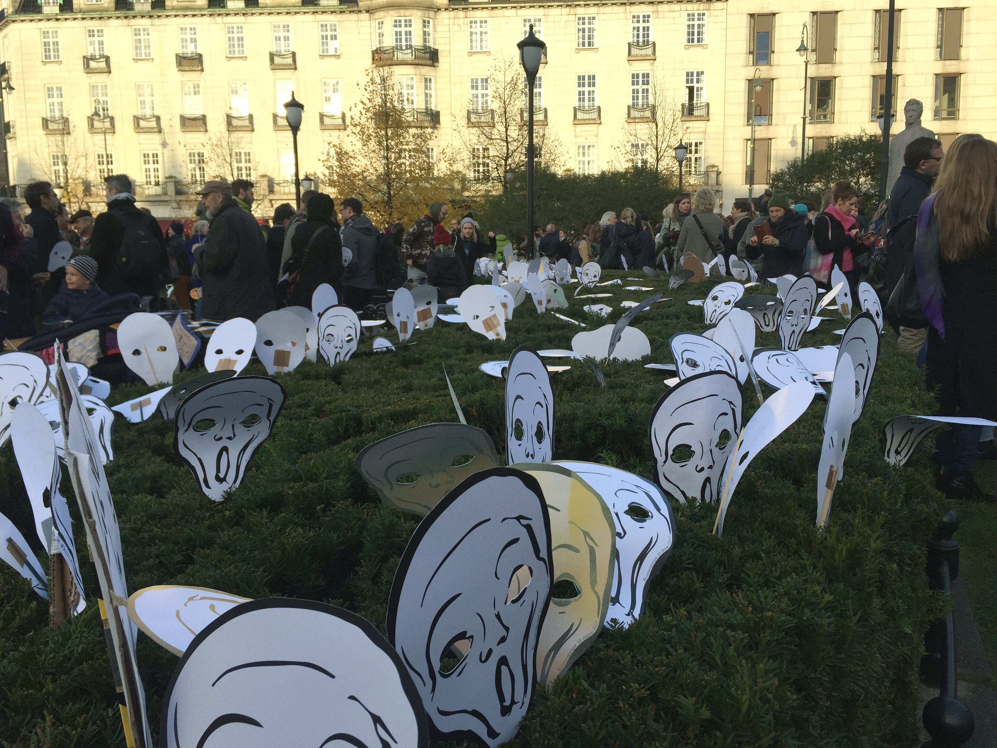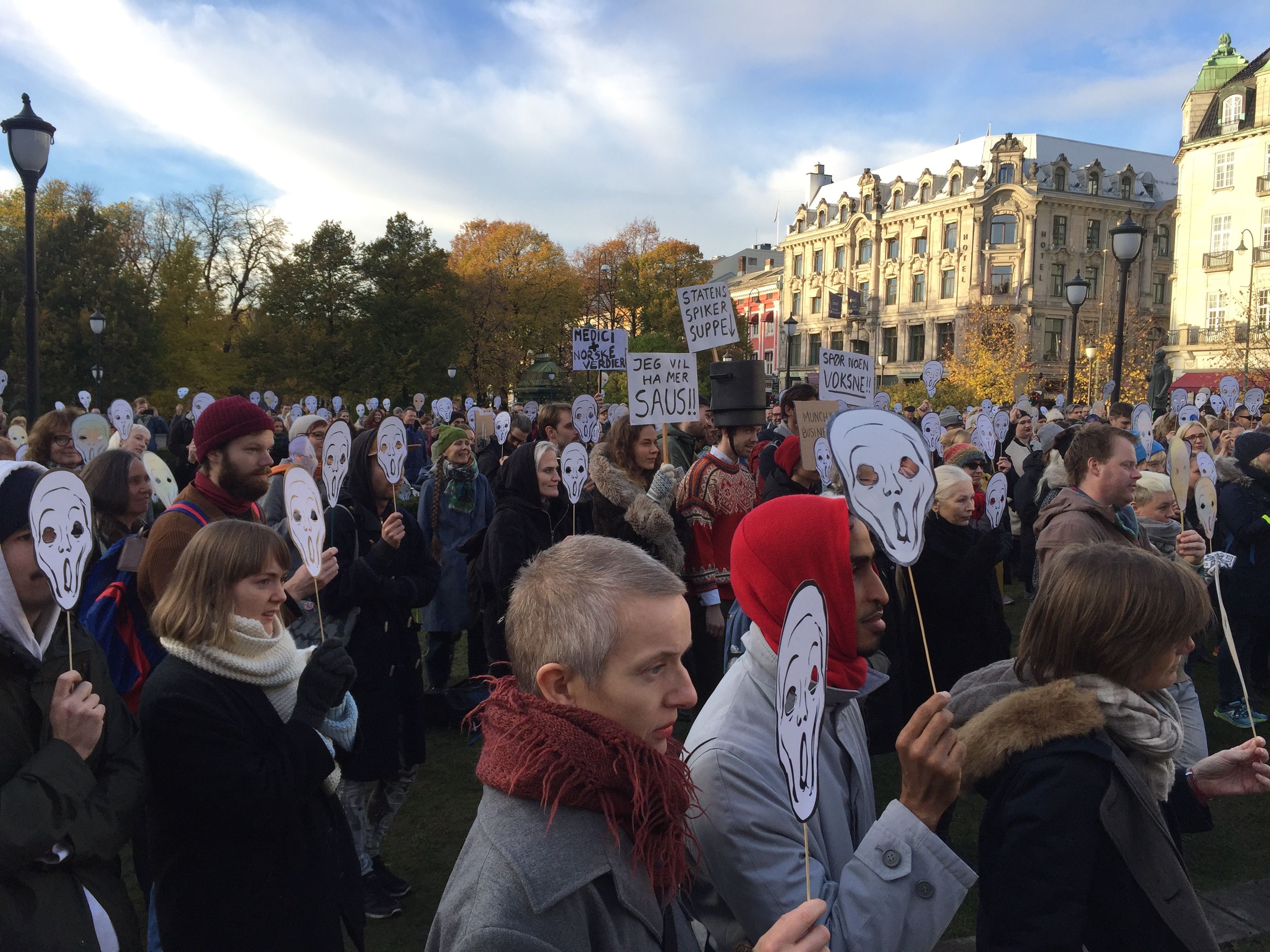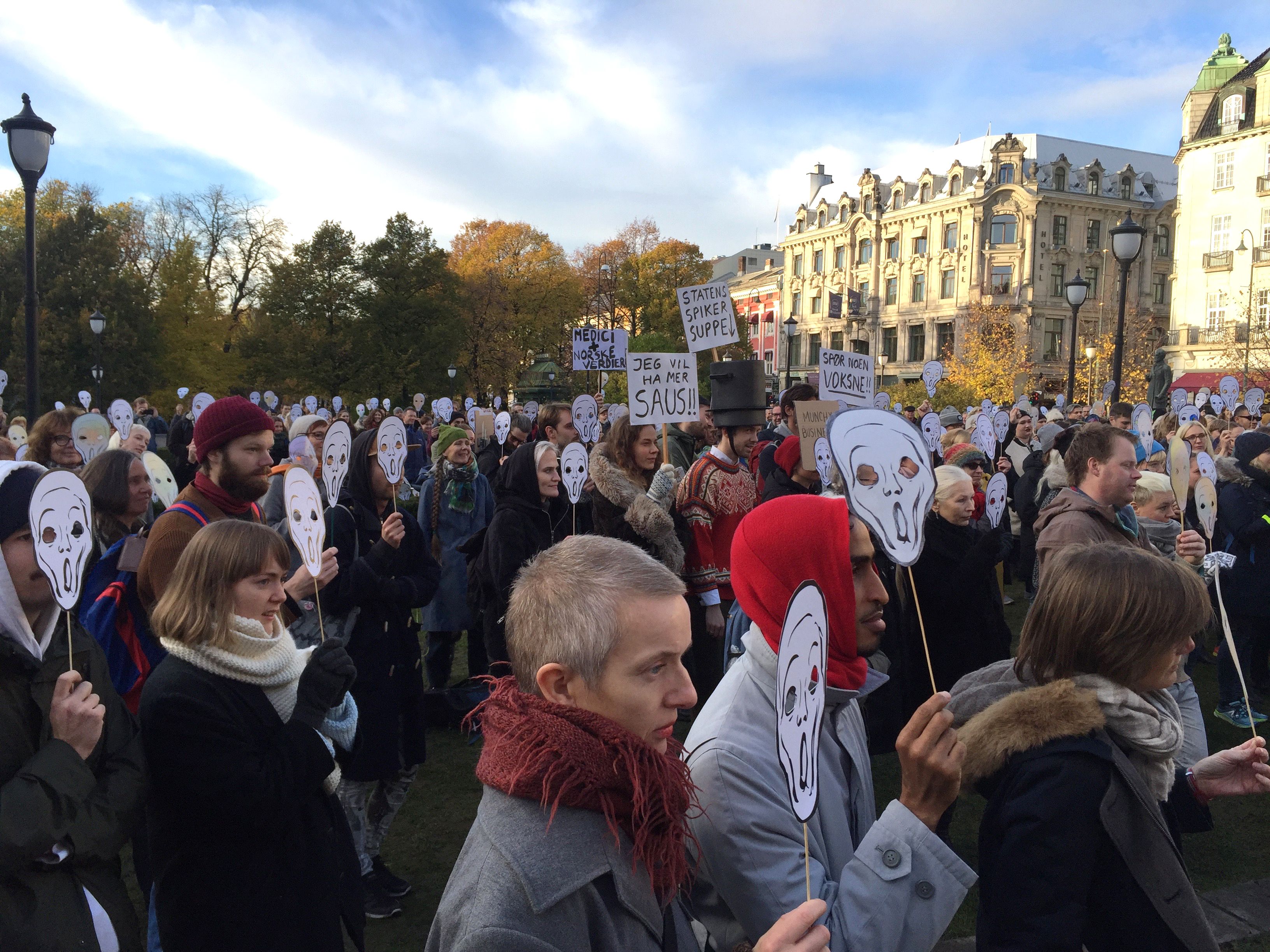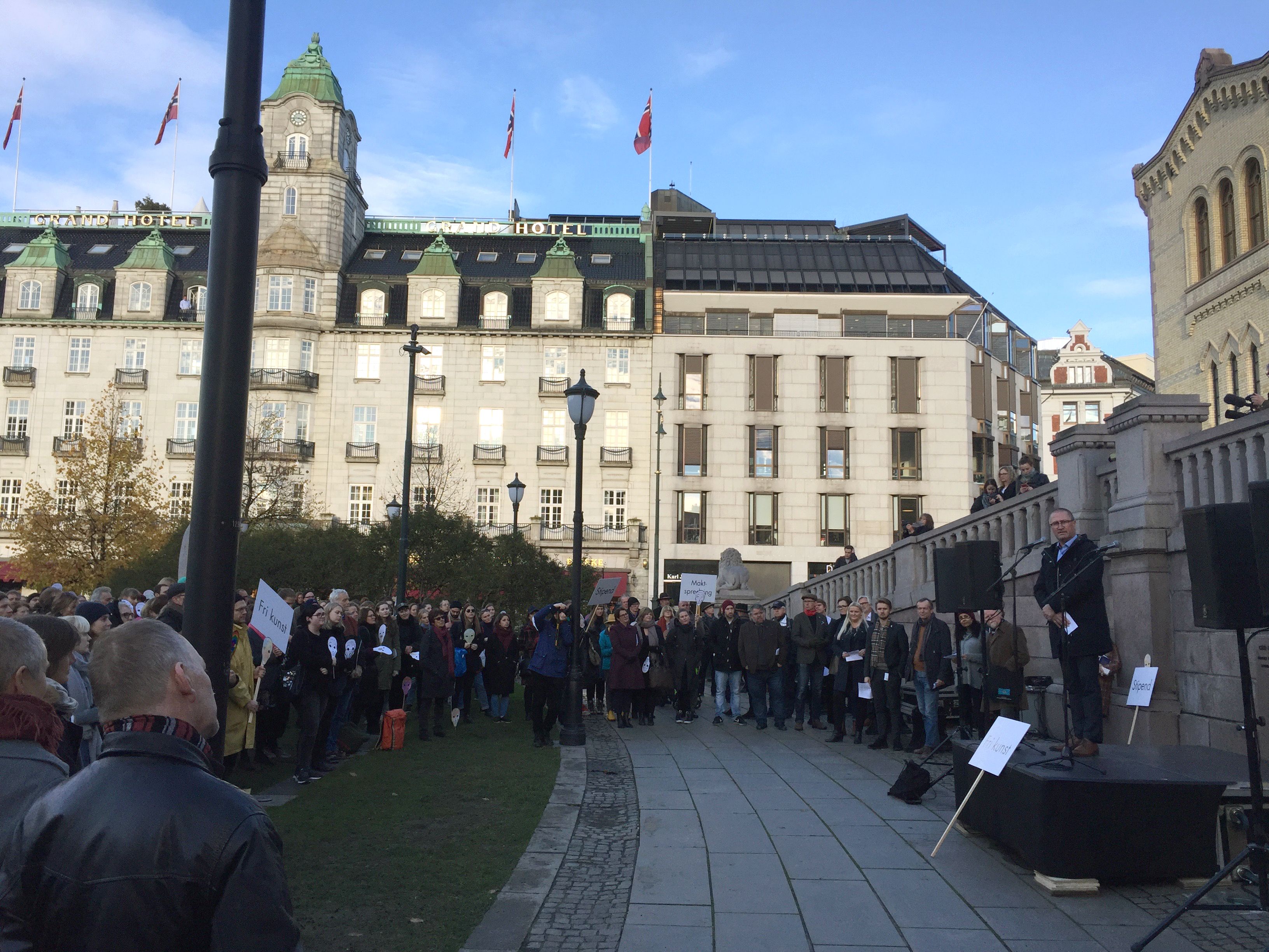 Det var stort oppmøte av kampklare kunstnere og kunstvenner som hadde møtt opp foran Stortinget i ettermiddag for å markere sin uenighet mot regjeringens forslag til statsbudsjett for 2018.