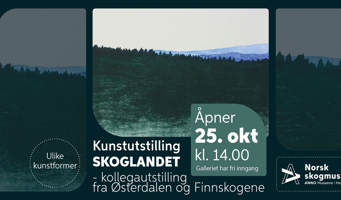 SKOGLANDET er en utstilling med kunstnere med tilknytning til Østerdalen og Finnskogene, kuratert av kunstnergruppa Taiga: kunsthåndverkerne Ingema Hoff, Ingun Kleppan, Ragnhild Arneberg. De har fordypet seg i ideen om den grenseløse skogen gjennom mange år. Nå har de fått med seg kolleger til å tolke hvordan de forholder seg til skoglandet – som bosted, livsstil, tenkning, motiv-, teknikk-, og materialmuligheter. Kunsthåndverkerne Kari Håkonsen og Vidar Koksvik, og billedkunstnerne Trond Einar Indsetviken, Hanne Borchgrevink, Tore Hansen og Marianne Tjønn deltar sammen med Gruppe Taiga. Utstillingen er åpen hver dag kl.10-16.