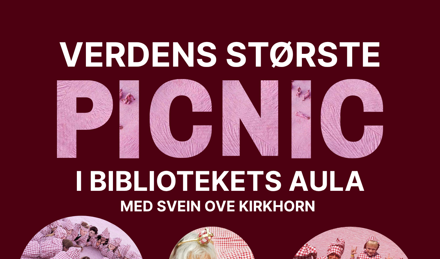 Performance med publikums deltakelse i Bibliotekets fantastiske Aula. Med Svein Ove Kirkhorn og Ann-Charlott Christensen For barn 11.00: Kle deg i PICNIC-klær og gjør deg klar. 11.30: PICNIC for barna med Ann-Charlott Christensen. For alle 12.00: PICNIC for alle. 14.00: Avslutning