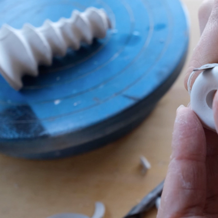 Gunhild Vatn er opptatt av kunstens rolle i samfunnet og utforsker kulturelle og materielle historier igjennom ulike kunstuttrykk i støpt porselen.