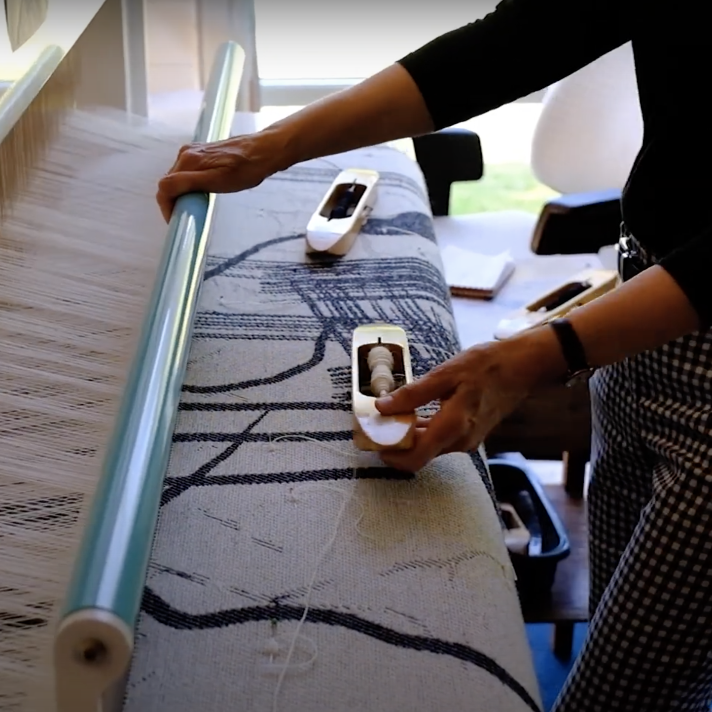 Anne Størseth kombinerer matematikk og veving på TC-2 veven for å utforske alle slags former og uttrykk man kan ha på et åkle.