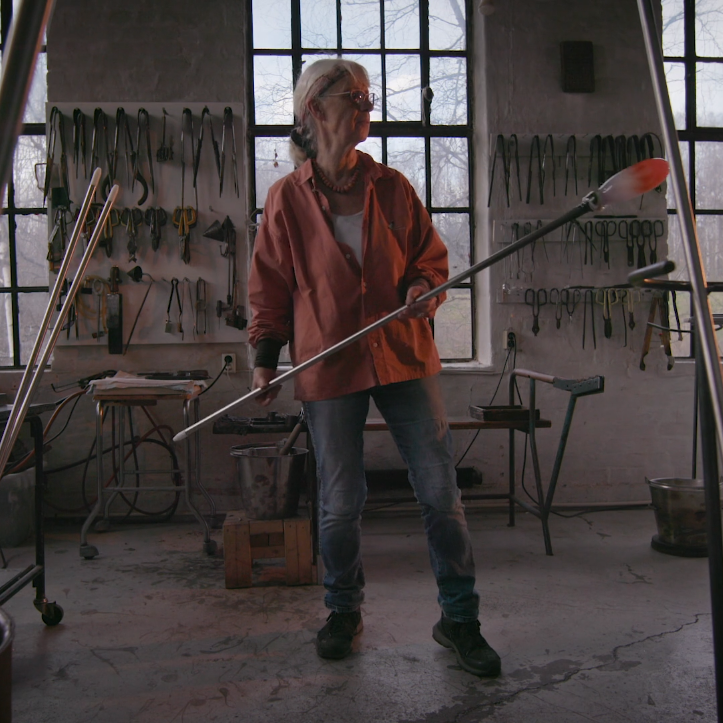 Kunsthåndverk blir til: Vannets transformasjoner fascinerer Karen Klim. Det hun ønsker å fange i verkene sine, via det flytende varme glasset, er formens sensualitet og karakter.