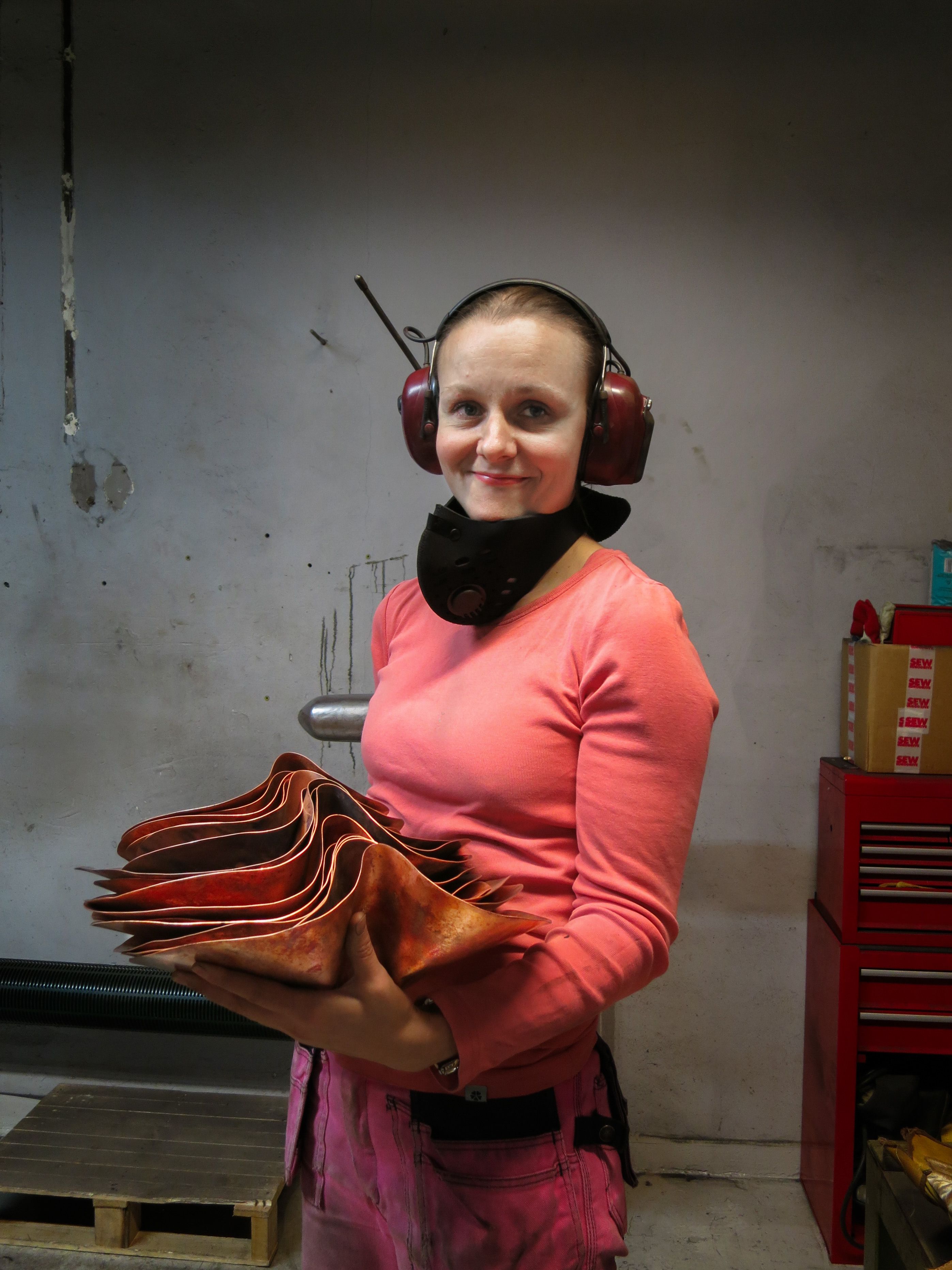 Sofia Karyofilis modellerer metall med hammeren og finner en komfort i materialets motstand.