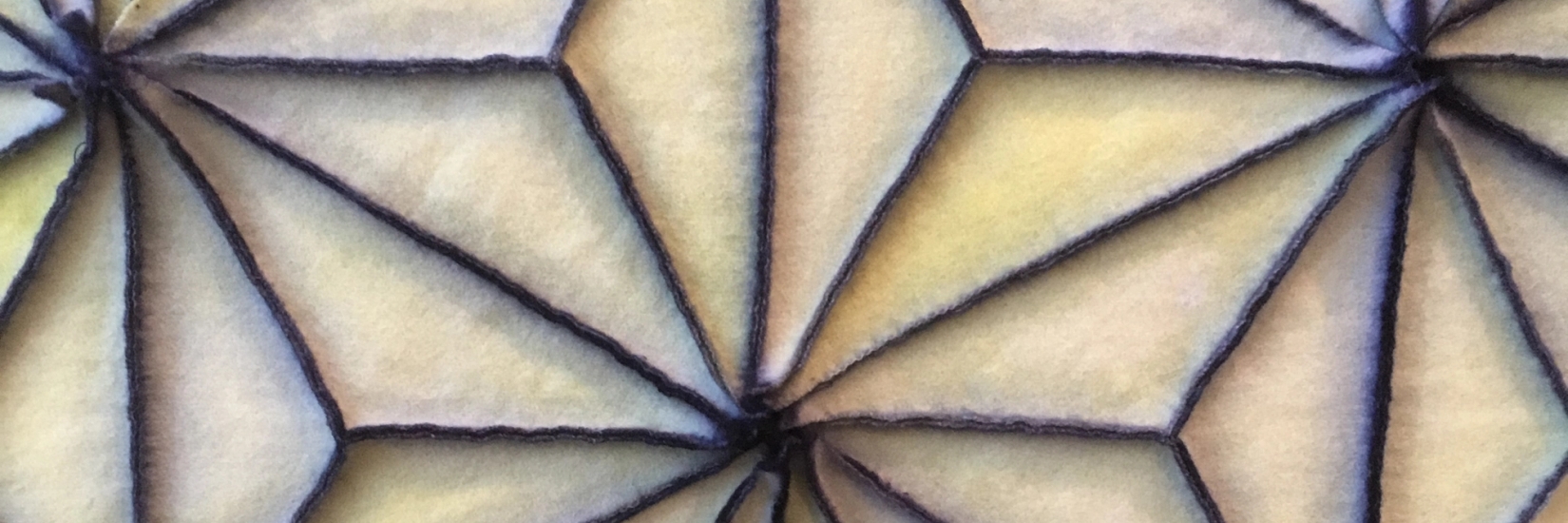 Mitt arbeidsområde er tekstil og i hovedsak shiboriteknikk, den japanske betegnelsen på innfarging i ulike reserveringsteknikker. Materialet i veggteppene mine er en tettvevet vadmel, som gjør det mulig å bygge opp tekstiler med tredimensjonalt uttrykk, som er stabile og holder formen. Teppene blir konstruert av mange mindre elementer, utgangspunktet er ofte en enkel geometrisk eller organisk form som har mange kombinasjonsmuligheter. Stoffbitene skjæres ut, farges i flere omganger og sys sammen for hånd til moduler som igjen sys sammen til ønsket helhet og størrelse.