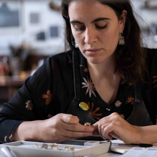 Alma er en norsk smykkedesigner og gullsmed med base i London. Hun liker å eksperimentere med ulike former og utvikle kreative og skulpturelle smykker. Hun er blant annet inspirert av arkitektur, rene linjer og skjulte detaljer. Alma Sophia Grønli Geller har en Bachelorgrad i Silversmithing, Goldsmithing and Jewellery fra University for the Creative Arts i England. Hun er også utdannet gullsmed fra Plus-Skolen i Fredrikstad.