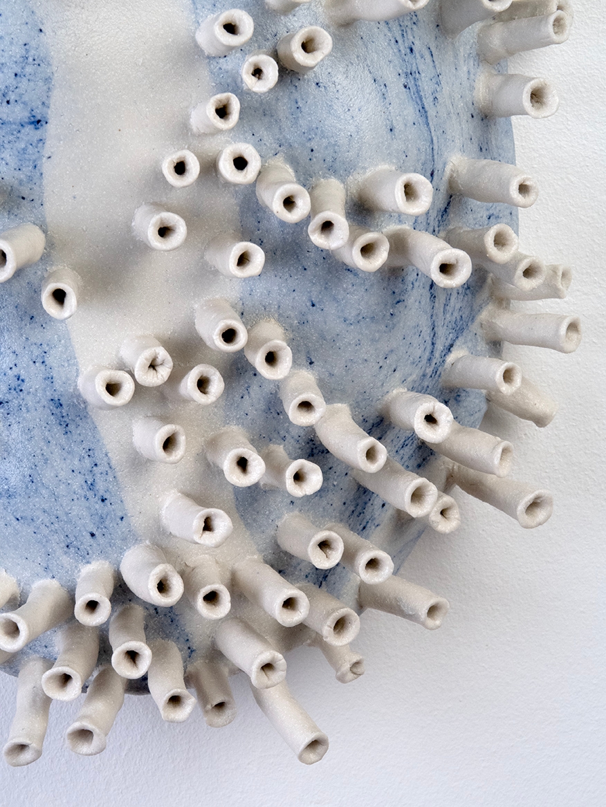Jeg arbeider som keramiker på Tjøme og lager hovedsakelig skulptur i ulike typer leire, men også noe brukskunst. Leire som materiale interesserer meg. Leira som fuktig, kjølig, myk og formbar, kan oppleves litt som hud, kropp, vekt. At selve leiretypen har mye å si for hvordan jeg jobber og hva som blir resultatet, overrasker meg stadig. Den endrer temperatur i prosessen og som tørka eller brent leire mister den denne nærheten eller kroppsligheten. Hvordan få koblet inn det sanselige igjen?