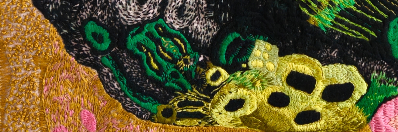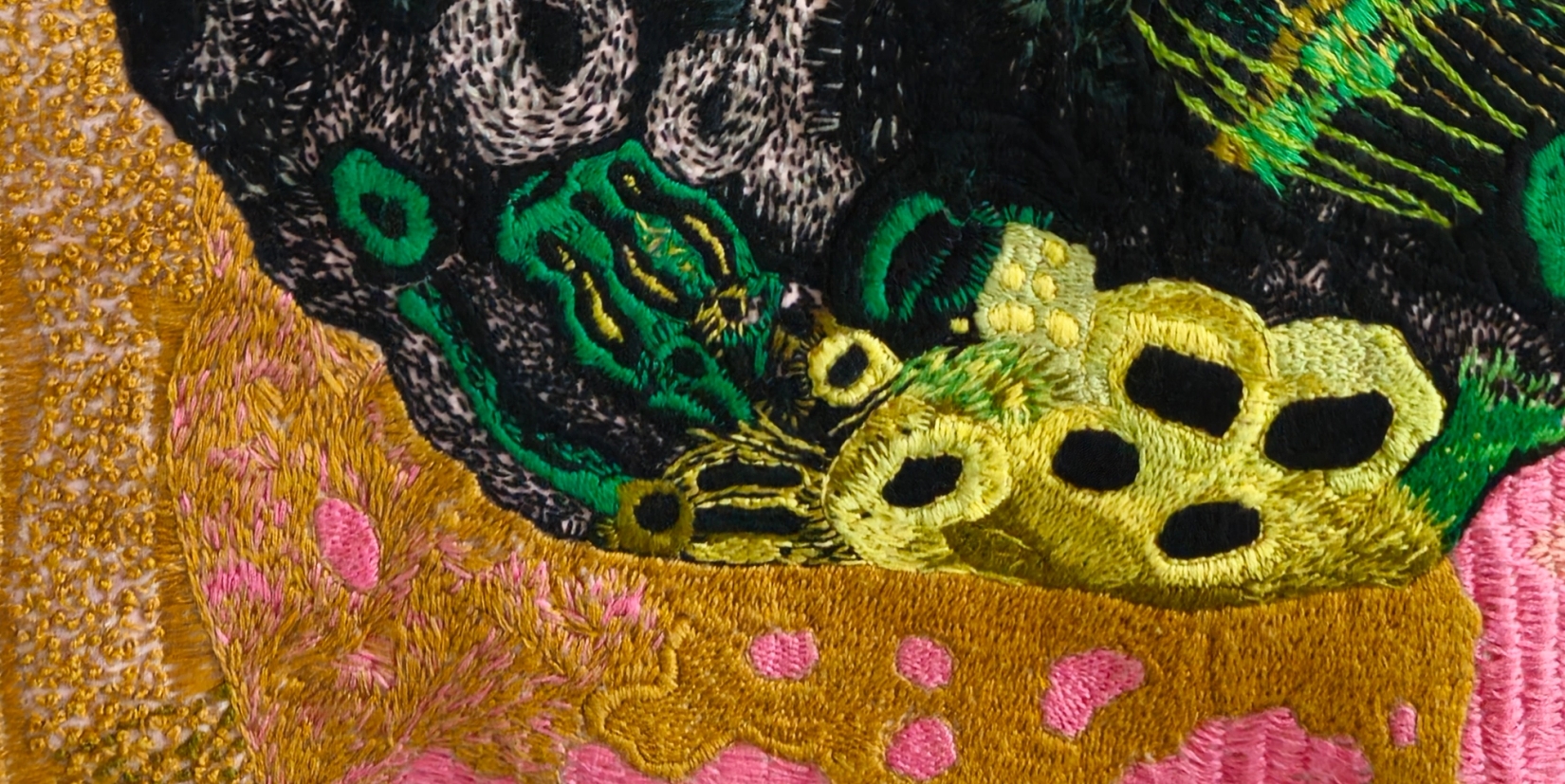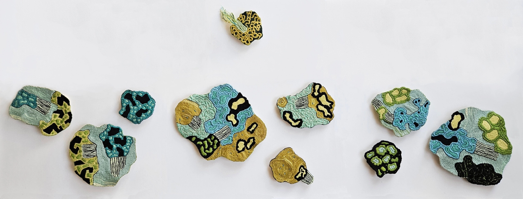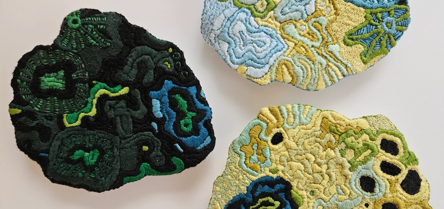 Et pågående prosjekt som utforsker en liten bit av naturens uendelige mangfoldighet med et skråblikk. På en bunn av grov, gjenbrukt lin med revne kanter broderer jeg en fantasivekst inspirert av lav o…