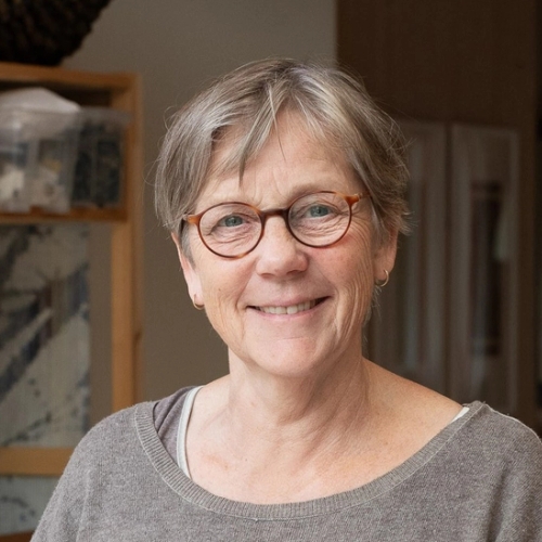 Det er som å komme hjem når hendene arbeider i veven. Bevegelsene sitter i kroppen, alt faller på plass. Arbeidet med trådene får min verden til å henge sammen, slik renning og innslag henger sammen. Fargen på renningen danner en klang av grunntoner, den jevne avstanden mellom trådene setter takten for innslagenes rytme og melodi. Og tiden det tar å veve er en selvfølgelig del av helheten.