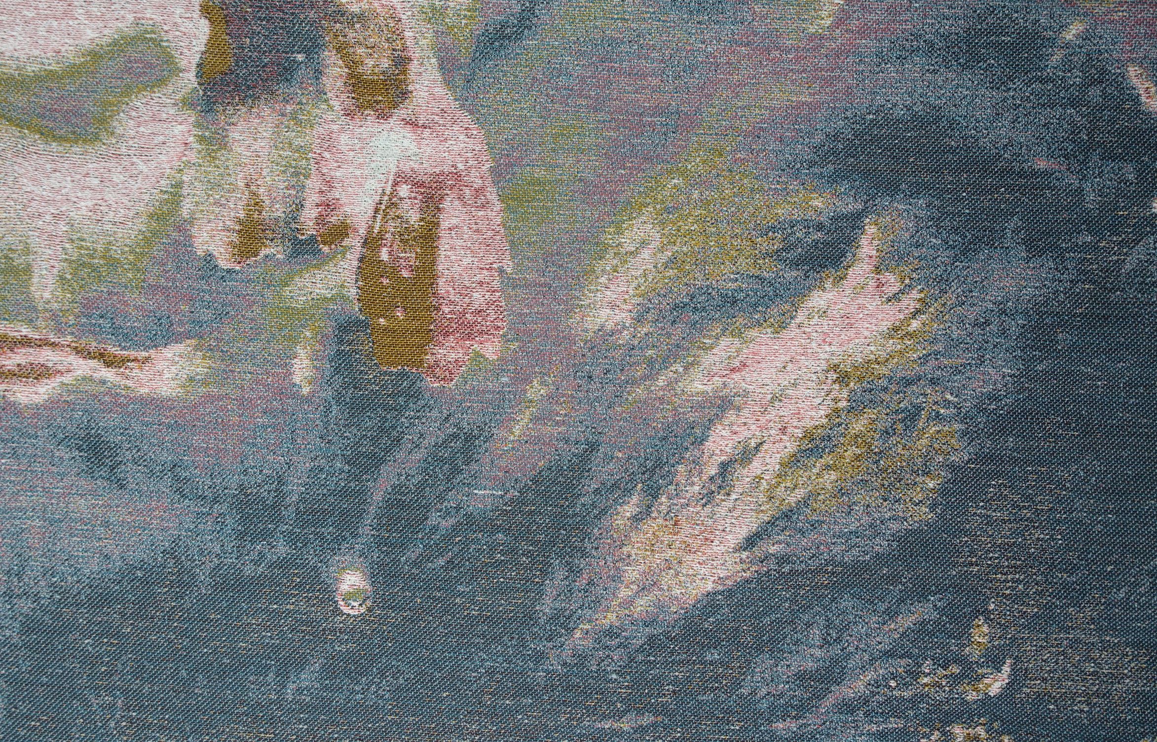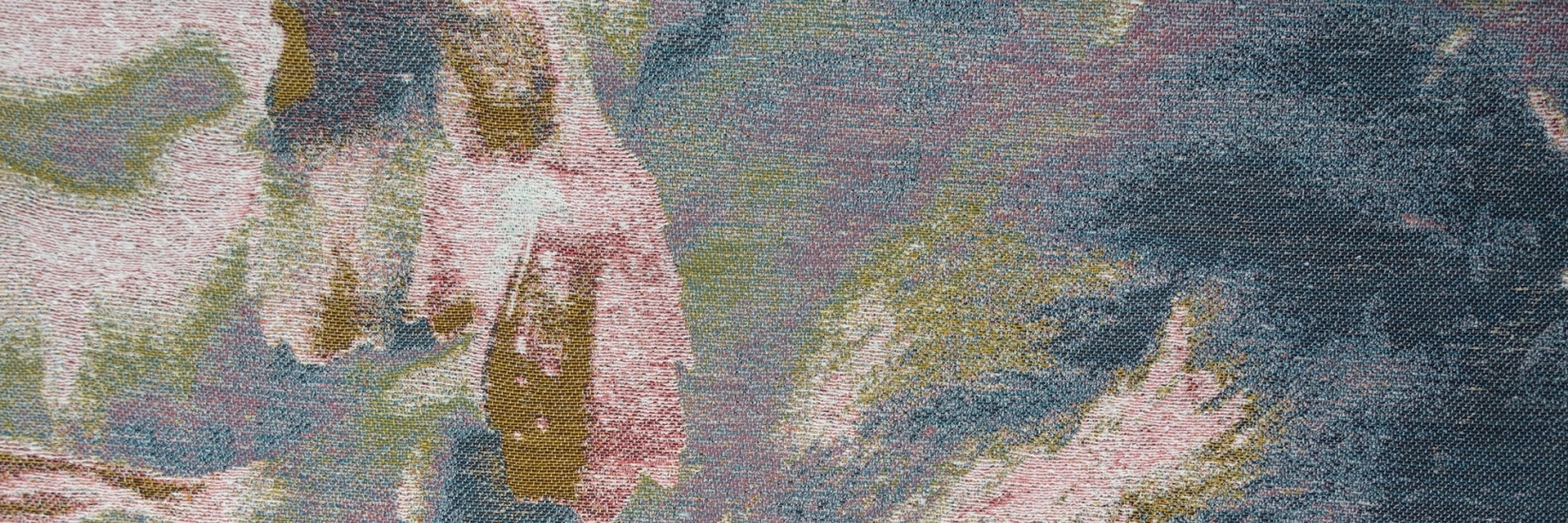 Bestillingsverk til Tidens Krav sin nye redaksjon. Digital jaquard, håndvevd ull, lin, ståltråd og bomull.