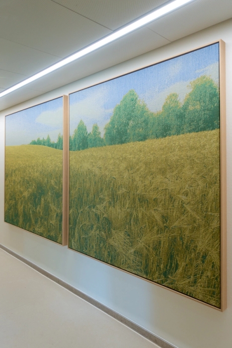 Utsmykning av Sommerro Omsorgsboliger for Kristiansund kommune, påbegynt i januar 2020. Produsert hos Krivi-vev i april 2022, og montert av kunstner i månedskifte mai/juni 2022.